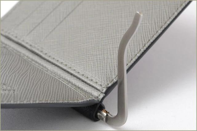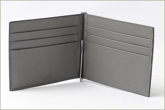 プラダより、コンパクトな折財布/マネークリップですPRADA のロゴを象ったメタルプレートがアクセントになり高級感があります。ビジネスシーンにもピッタリのセンスの良いデザイン。取り外しができるマネークリップは、別々にも使用可能です。コインと、お札を分けてお使いいただく方にもおすすめです。財布の中身が多くなりがちな方にもオススメ!
