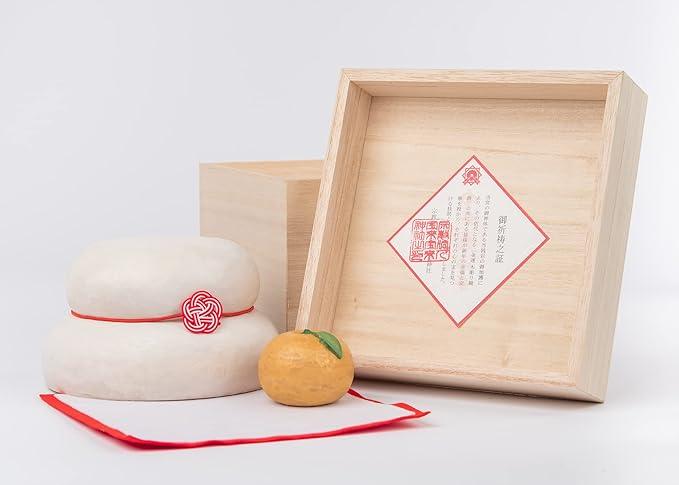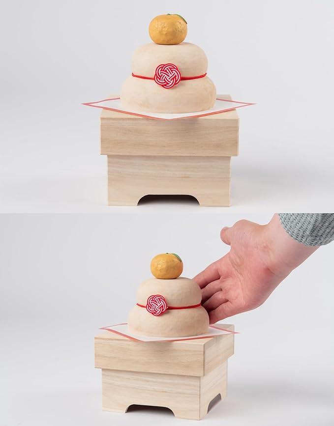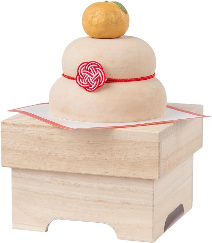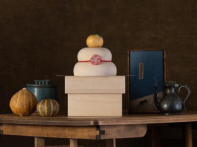 この商品について 木彫り鏡餅のお正月飾り(小サイズ) 仏屋さかい原型彫刻・複製監修 宝来宝来神社 金運招来祈祷済み サイズ(約):鏡餅-高さ65×幅98×奥行98mm 黄金橙(ミカン)-高さ31×幅39×奥行39mm 三宝型桐箱(飾り台兼用)-高さ92×幅136×奥行136mm 総重量(約):320g(鏡餅-145g、橙(ミカン)-12g、三宝型桐箱-160g) 飾り付け時:タテ136mm×ヨコ136mm×高さ188mm 紅白紙を斜め敷きした場合、タテとヨコが約20mmはみ出します。 ■素 材:鏡餅・橙/桧、三宝型収納箱/桐、水引飾り/ゴム・レーヨン、紅白紙/紙 ◆製品内容:鏡餅、橙、三宝型桐箱(飾り台兼用)、水引飾り、紅白紙、御祈祷証明書(飾り台添付) ◇企画-日本(株式会社MORITA) 原型-日本(仏屋さかい) ◆製造-鏡餅・橙/中国 三宝型桐箱・水引飾り・紅白紙/日本 御祈祷-日本(宝来宝来神社)もっと見る