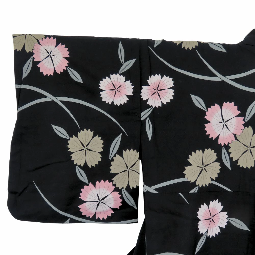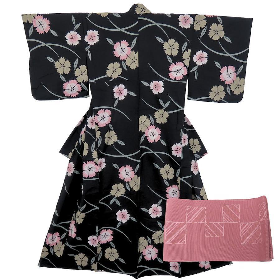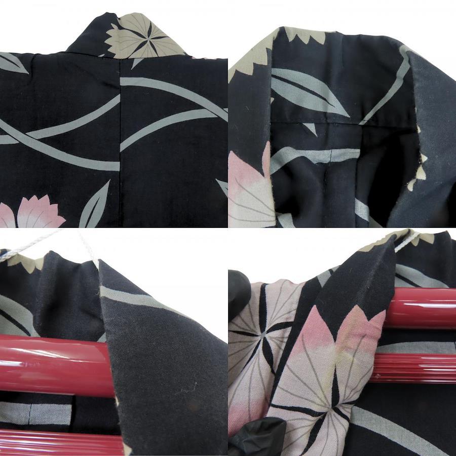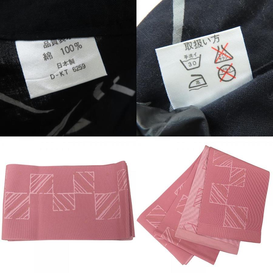 | 品名 | 【中古】 浴衣 2点セット 半幅帯 綿 ポリエステル ブラック くすみピンク マルチカラー 草花柄 大人可愛い レディース 女性 |