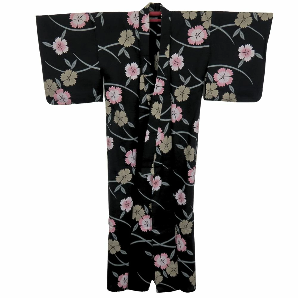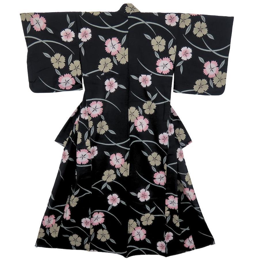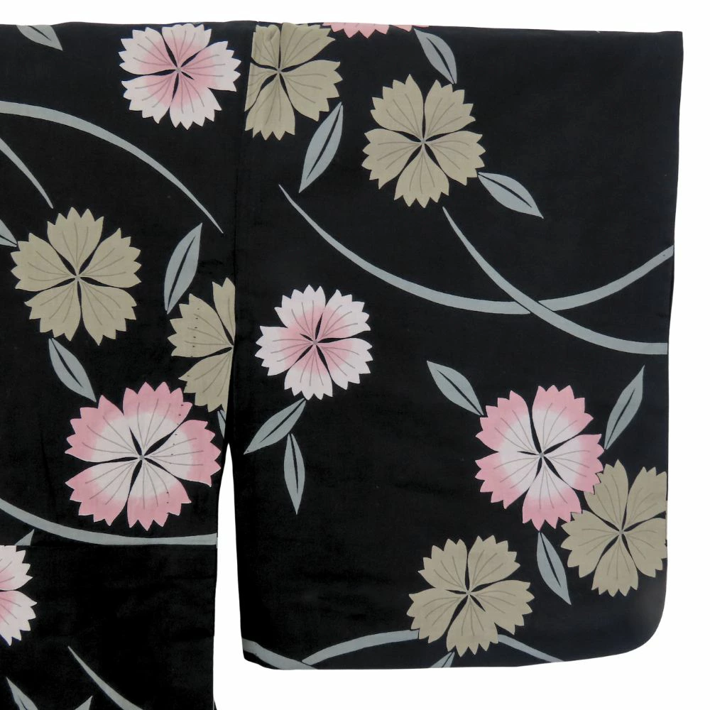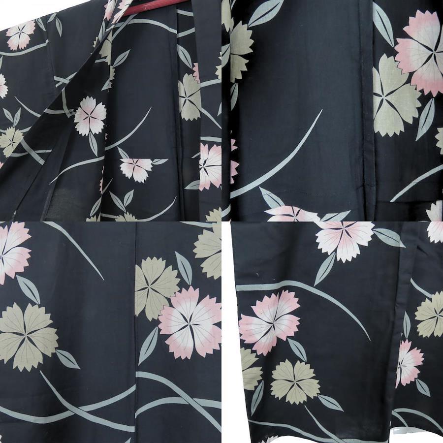 | 品名 | 【中古】 浴衣 2点セット 半幅帯 綿 ポリエステル ブラック くすみピンク マルチカラー 草花柄 大人可愛い レディース 女性 |