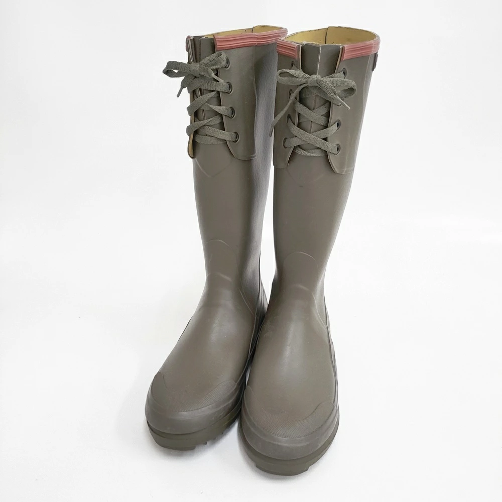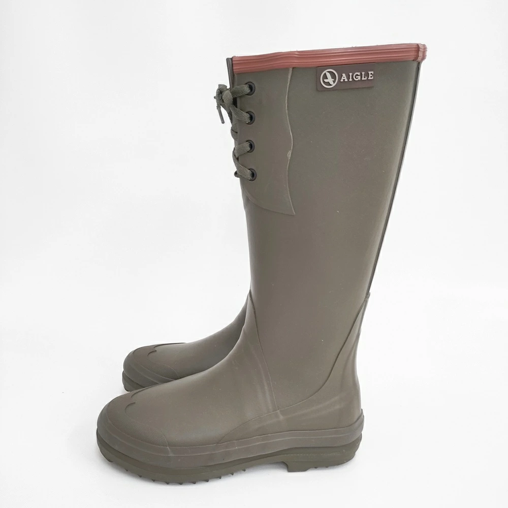 Pre-owned Aigle Nemrod lace-up rubber rain boots, size 38, khaki, women's. Product code: 6-0219G.
