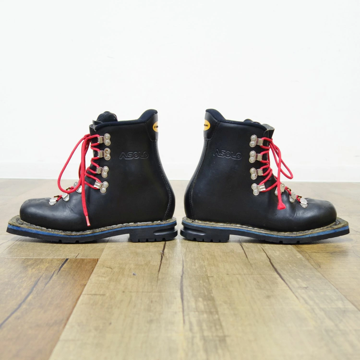 Pre-owned ASOLO Extreme Telemark Ski Boots, Leather, 75mm, 3-sprocket, UK 5.5, USA 6, EUR 38.