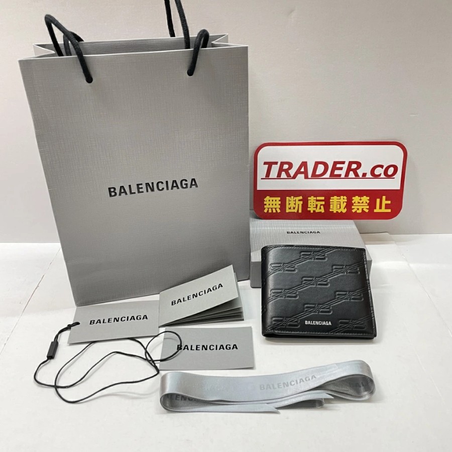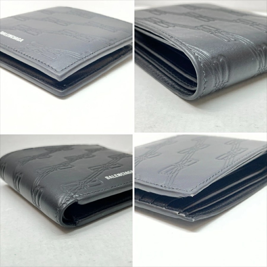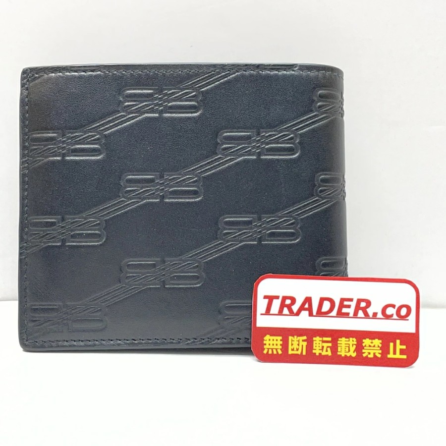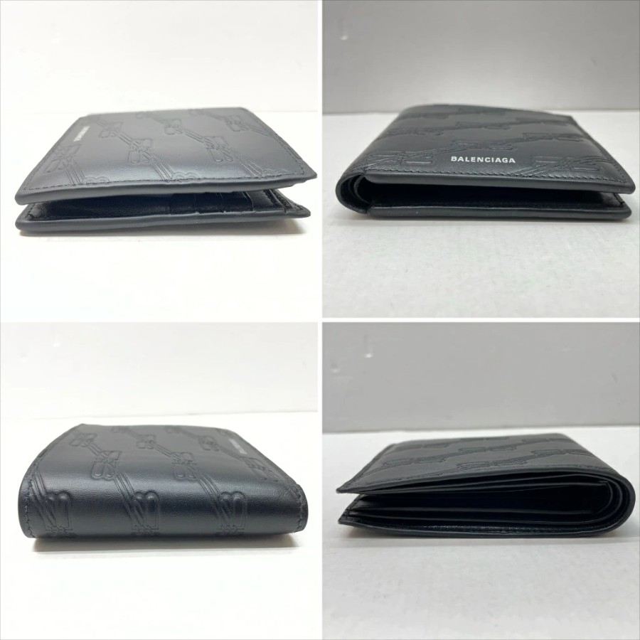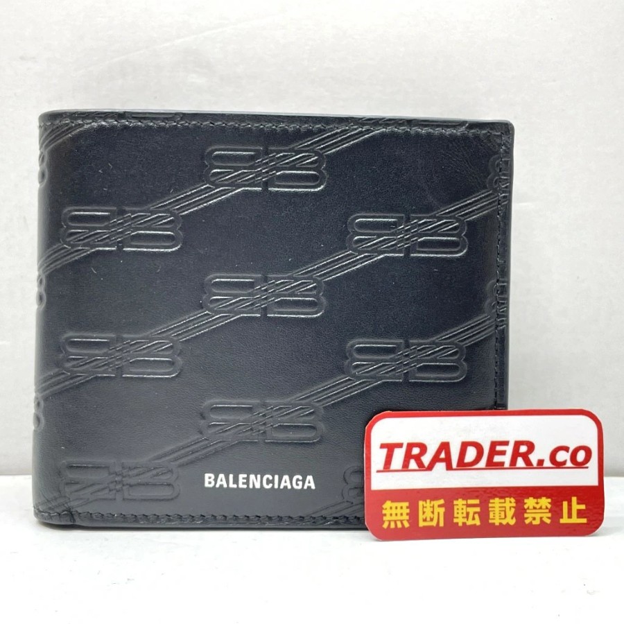 [Pre-owned] Balenciaga Embossed BB Monogram Square Folded Wallet. BB Monogram embossed bi-fold wallet with box and shopping bag. Black. Made in Italy. Men's bi-fold wallet. 721940 01w-6592 [Yuki Store]