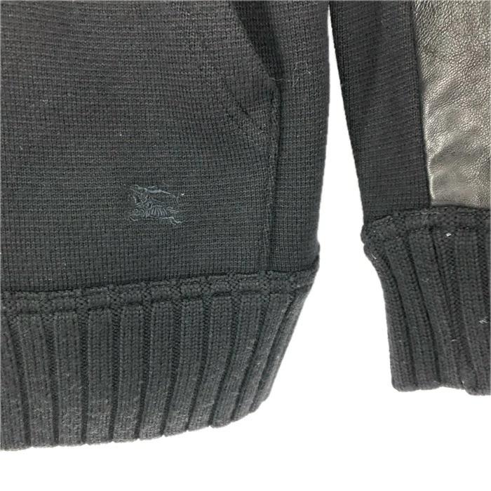 【アイテム】レザー切切り替え ニットブルゾン フルジップ 羊革 サイズ40 L相当