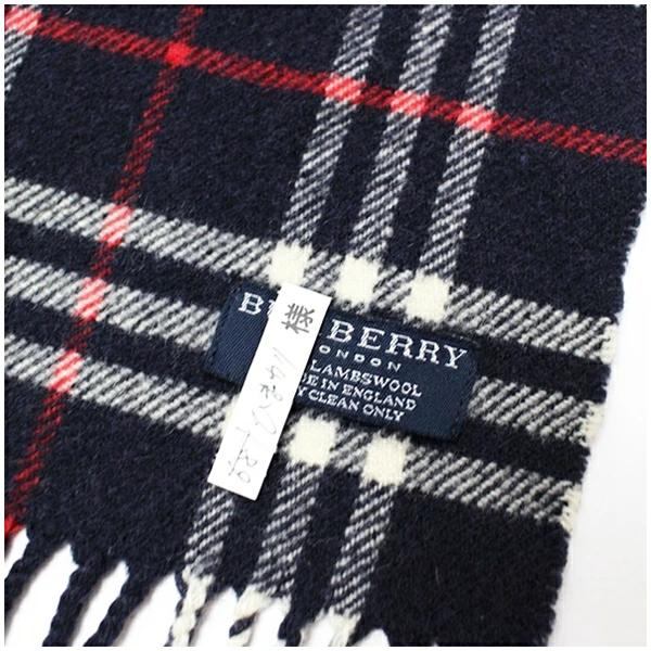 商品名バーバリー ウール マフラー ネイビー×チェック 184×30センチ 中古 ABランク BURBERRY