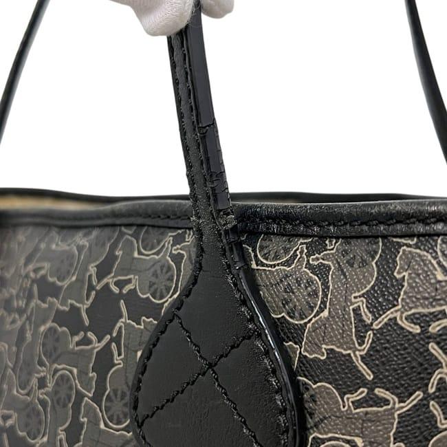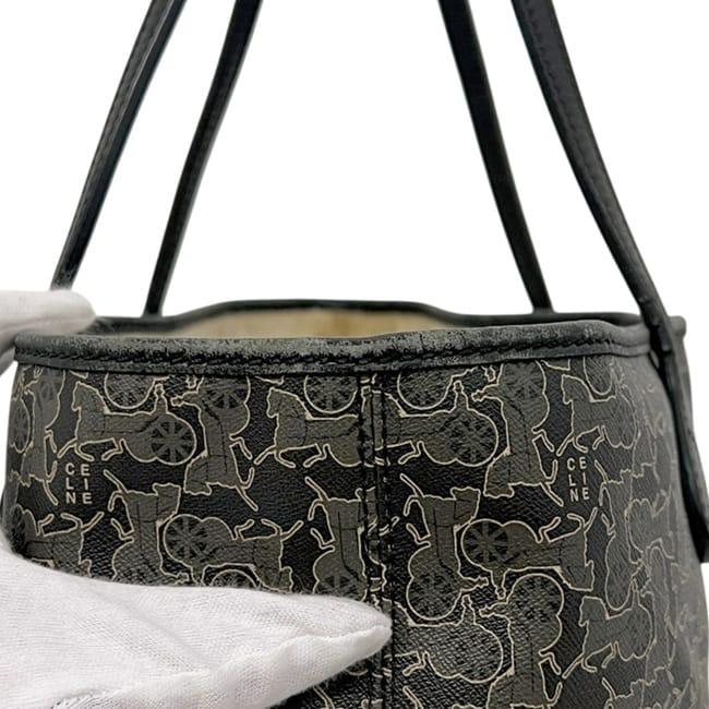 ☆---- 商品について ----☆セリーヌ トートバッグ サルキートート ec-24522 グレー ブラック 軽い PVC レザー 中古 SC-ST-0098 CELINE ロゴ 馬車 総柄 馬 肩掛け 黒 メンズ レディース 定番 人気 男女兼用 ヴィンテージ 軽量バッグ サルキー ブランド 本物 鑑定済み