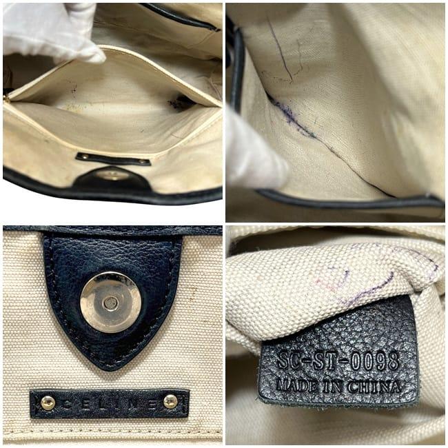 商品名:トートバッグサルキートートブランド名:セリーヌ/CELINE商品ランク:Bランク素材:PVCレザーサイズ:(約)w:下32cm×h:24.5cm×d:12cm、ハンドル:49cm型番・品番:-シリアル:SC-ST-0098カラー:グレーブラック仕様:ファスナーポケット×1、オープンポケット×2付属品:なし詳細説明:角や縁に擦れ、ハンドル付け根と上部のコバにひびや剥がれ、内側全体に染み汚れなど使用感が非常に強くございます。管理ナンバー:ec-24522no,6900321251115