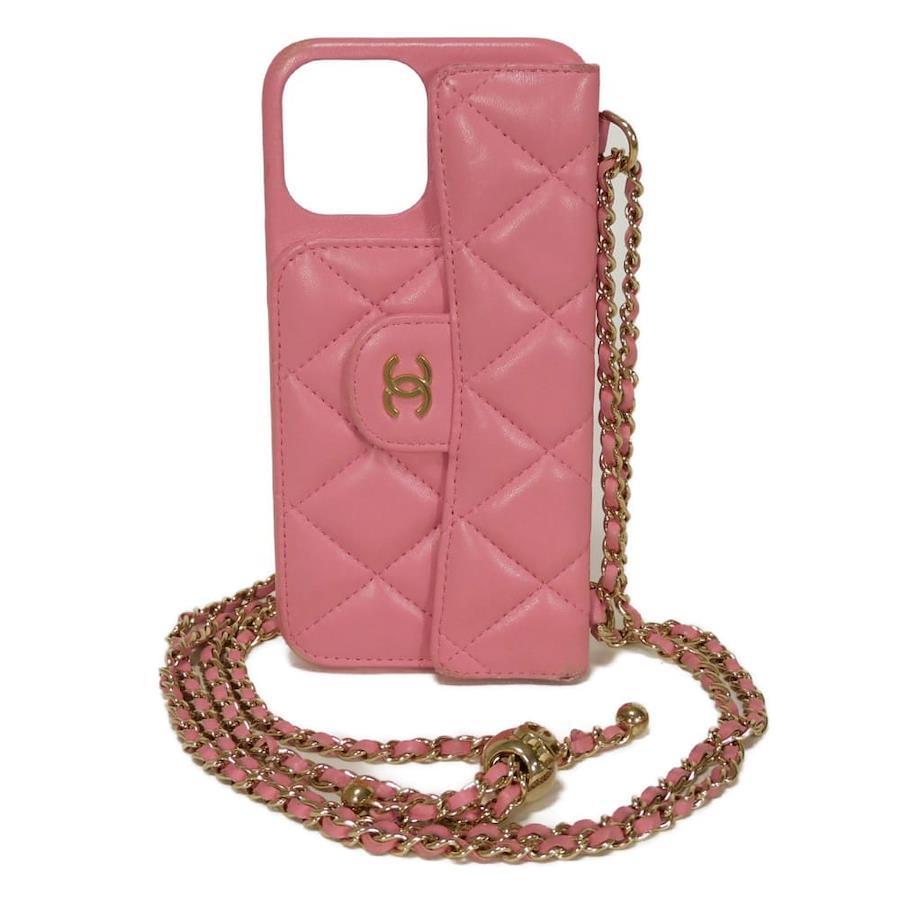 | キルティングステッチが施された、ナッパレザーにシャネルのココマークがあしらわれた「マトラッセ iPhone 13 Pro Max ケース」チェーンショルダー付きスマホケースです。 |