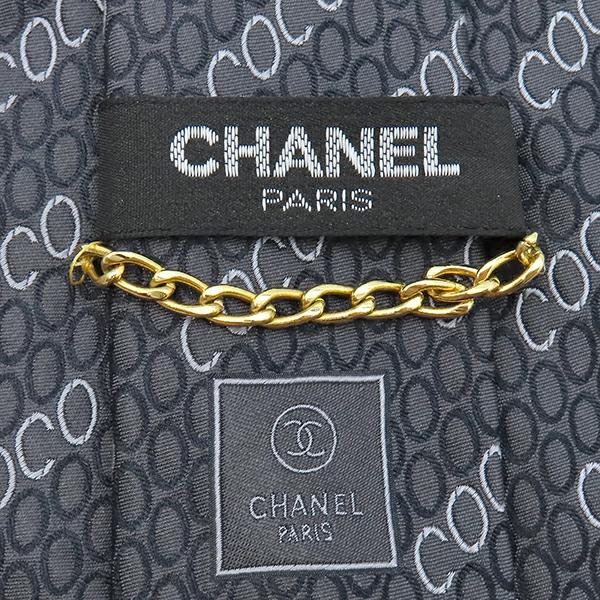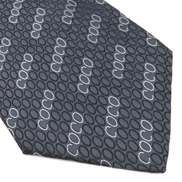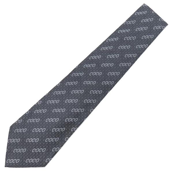 【【 シャネル CHANEL ネクタイ COCO柄 9.5cm シルク グレー×ネイビー総柄 - メンズ定番 人気 美品 【中古】】 【シャネル CHANEL】【-】