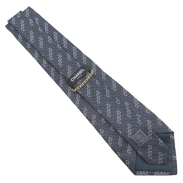 シャネル CHANEL ネクタイ COCO柄 9.5cm シルク グレー×ネイビー 総柄 - メンズ定番 人気 美品 【中古】