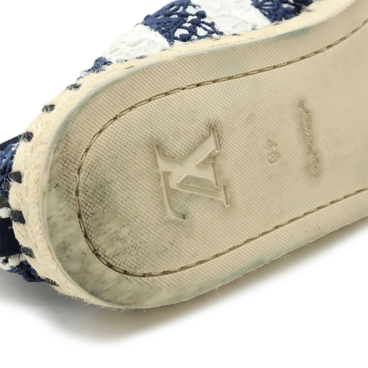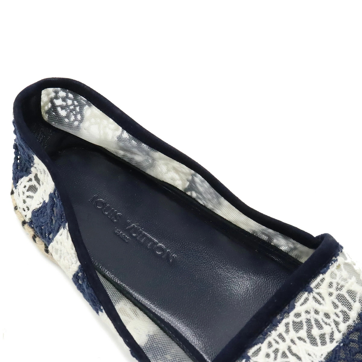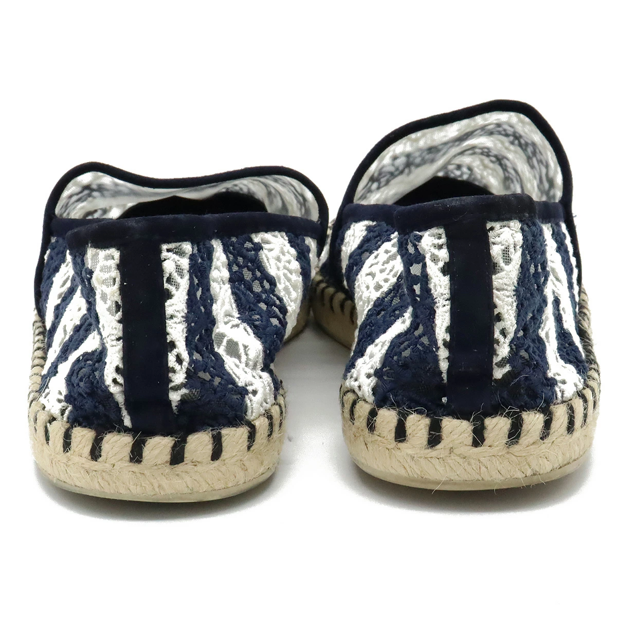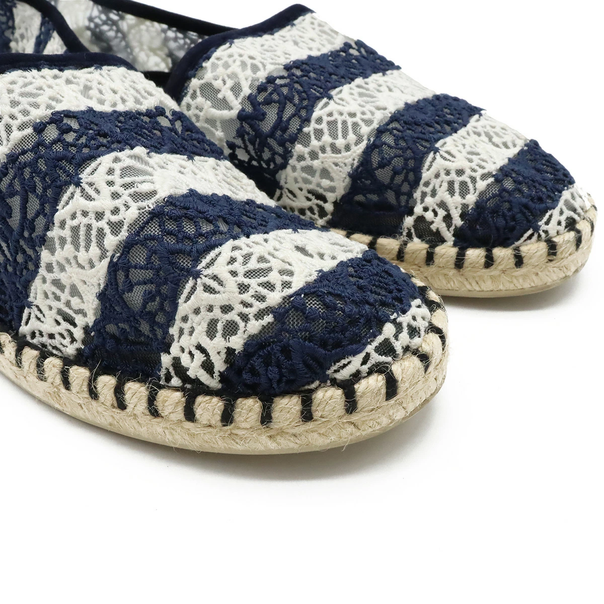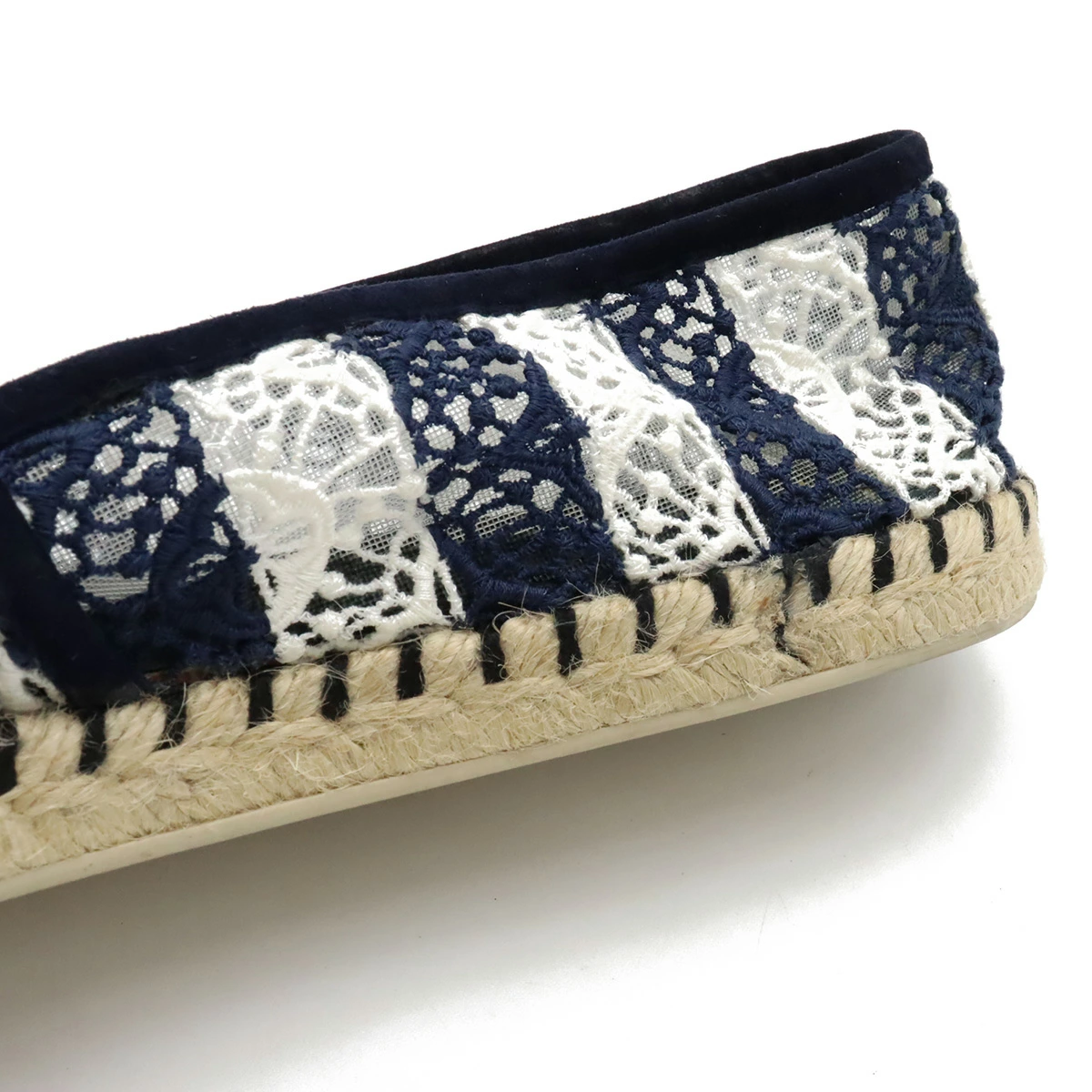 Pre-owned CHANEL espadrilles, flats, slip-on, lace, mesh, embroidery, navy and white, size 40, approximately 26cm (Japan size)
