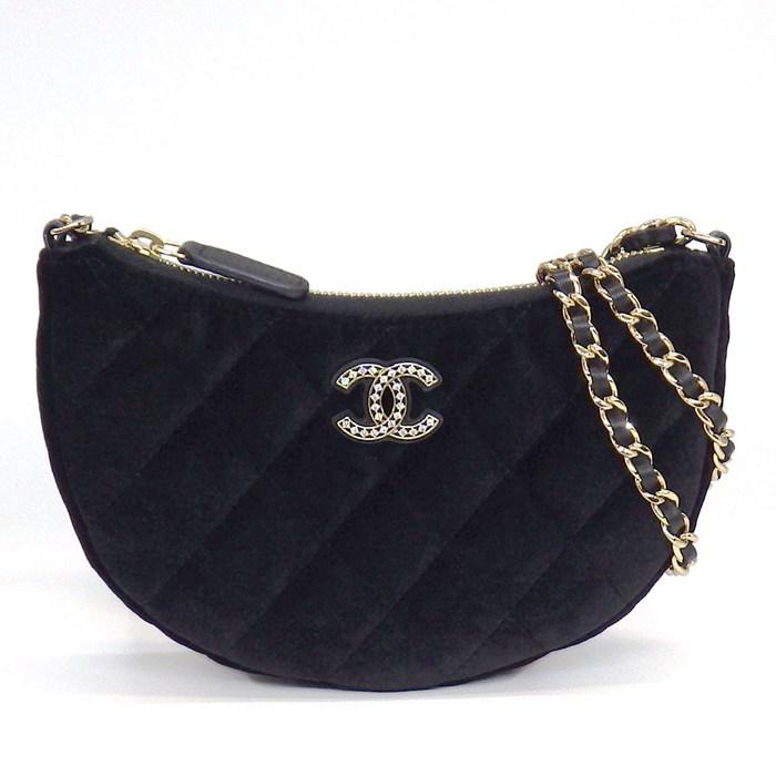 ■商品名マトラッセ ハーフムーン 2024イヤーズギフト ブラック ベロア レザー ゴールド金具 【中古】