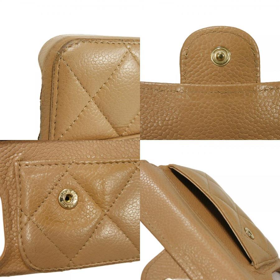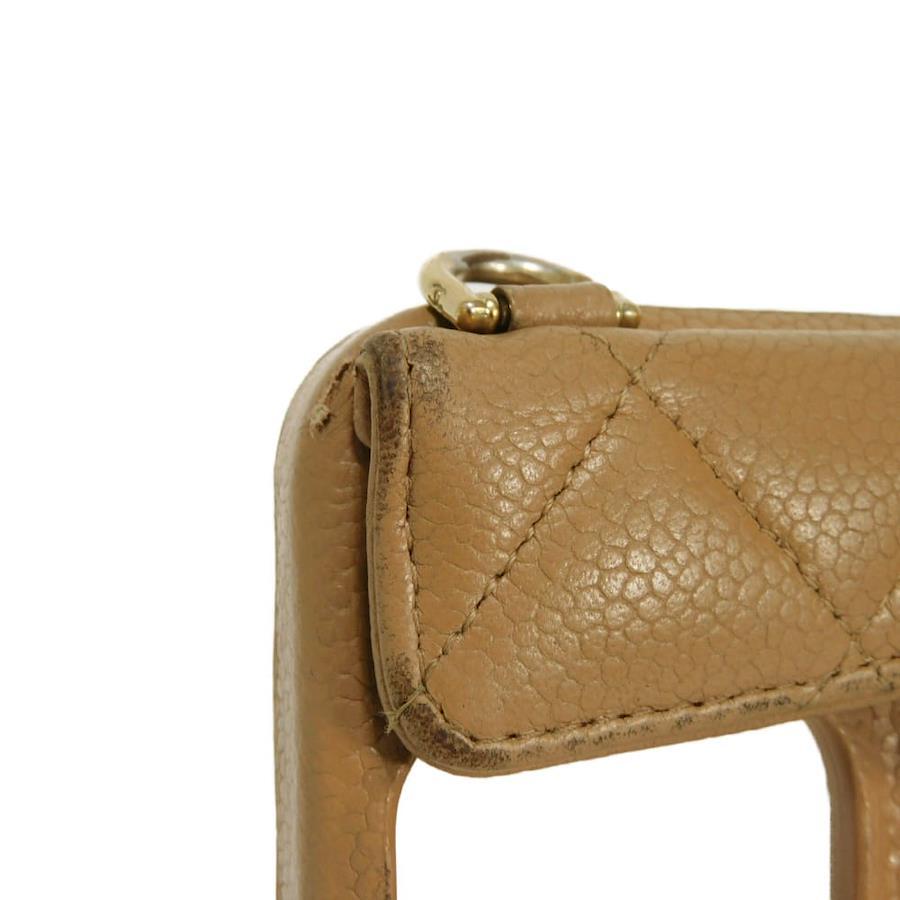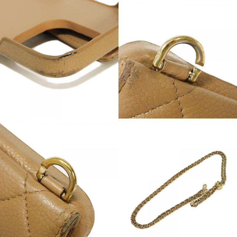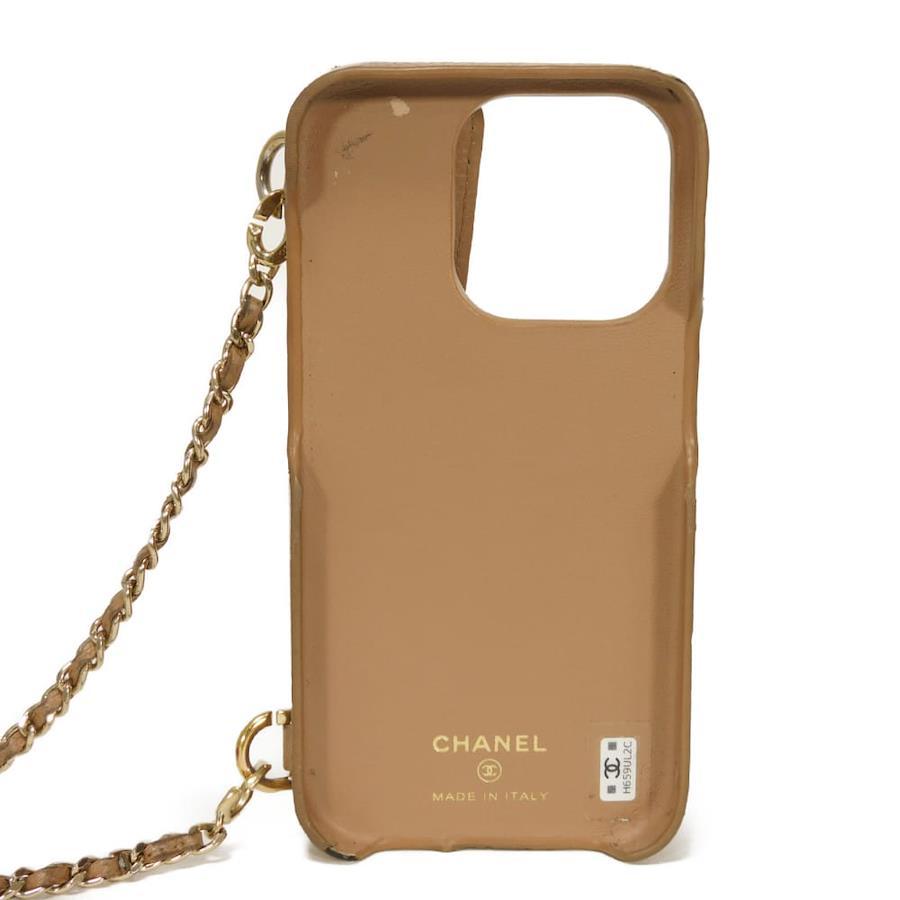 Pre-owned Chanel Matelasse iPhone 14 Pro Case with CC Logo, Coco Mark, and Chain Shoulder Strap, in Beige Caviar Leather (AP3553). Elegant, high-quality, and sophisticated for men and women.