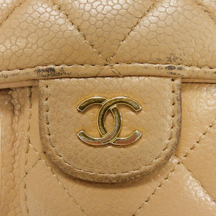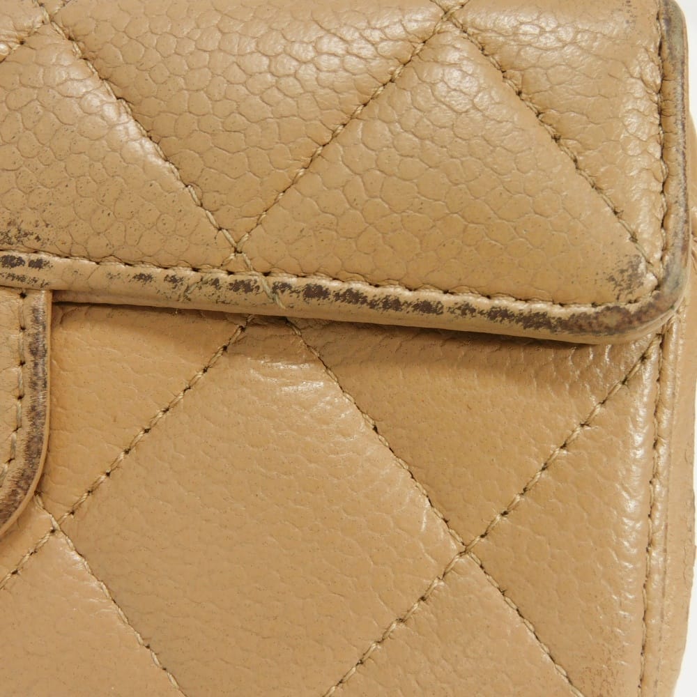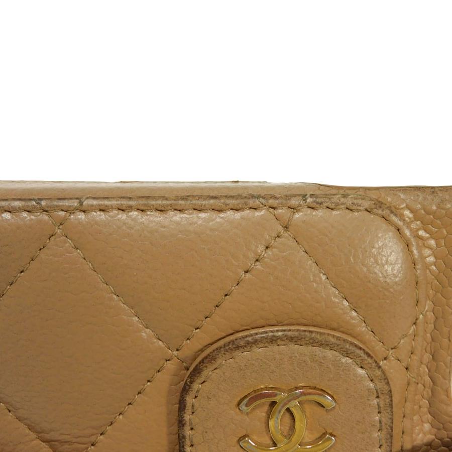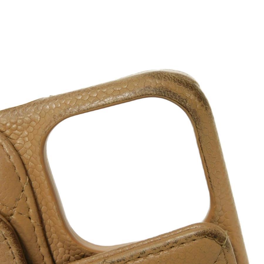 Pre-owned Chanel Matelasse iPhone 14 Pro Case with CC Logo, Coco Mark, and Chain Shoulder Strap, in Beige Caviar Leather (AP3553). Elegant, high-quality, and sophisticated for men and women.