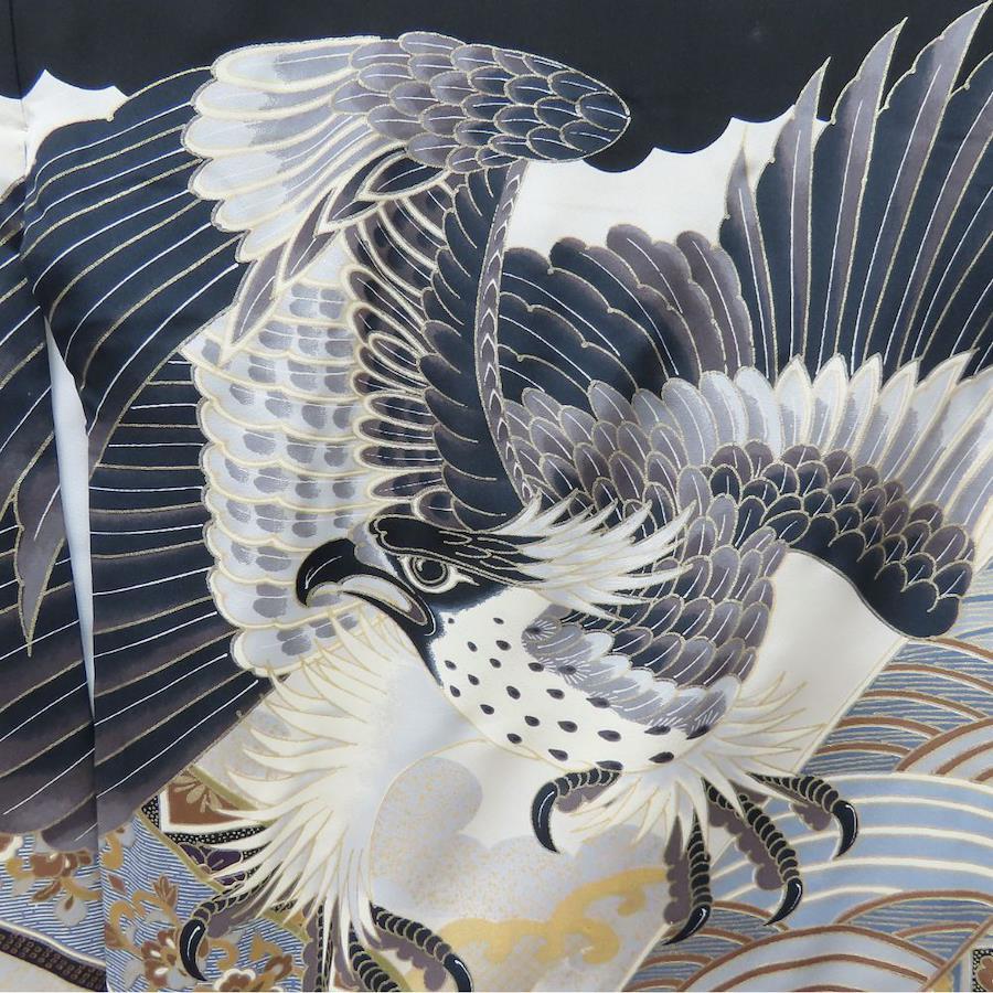 | サイズ | サイズ 袖丈:約 55.5cm 裄丈:約 47.5cm 肩身丈:約97cm 前幅:約15cm 後幅:約16.5cm 図柄:鷹 |