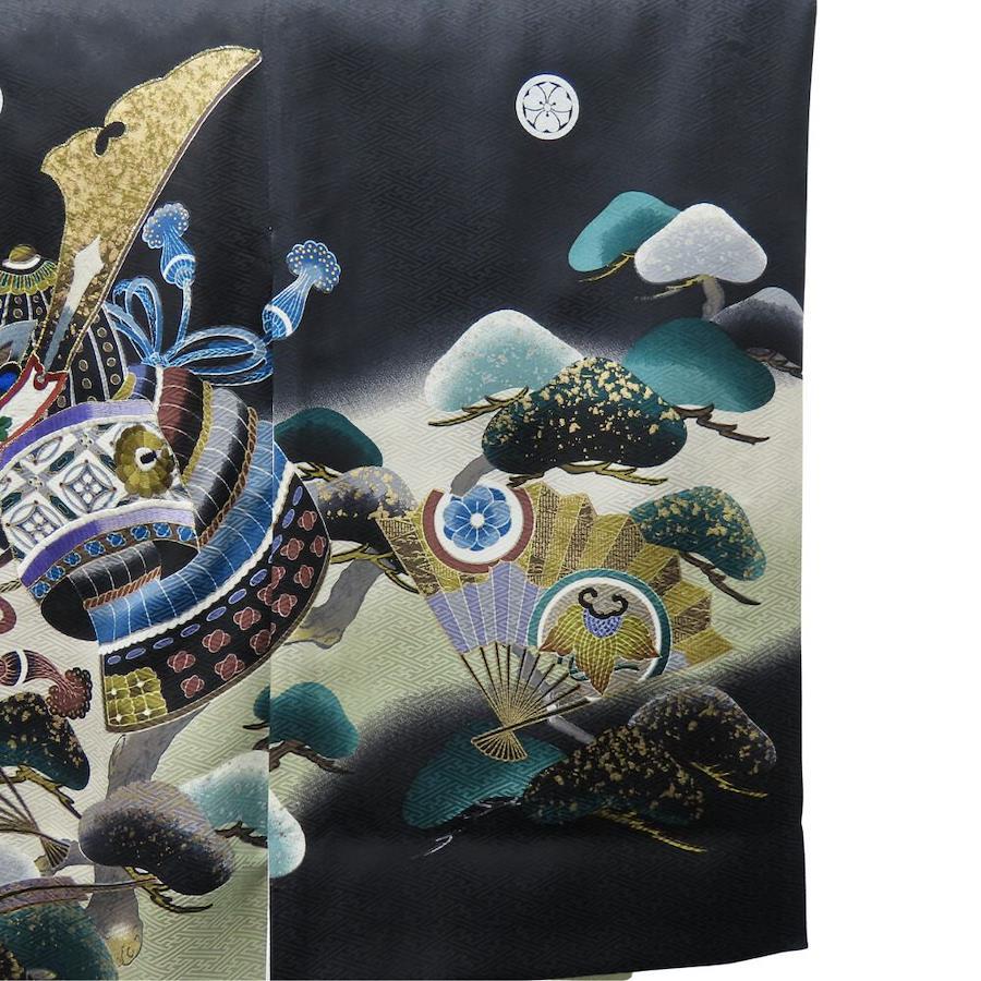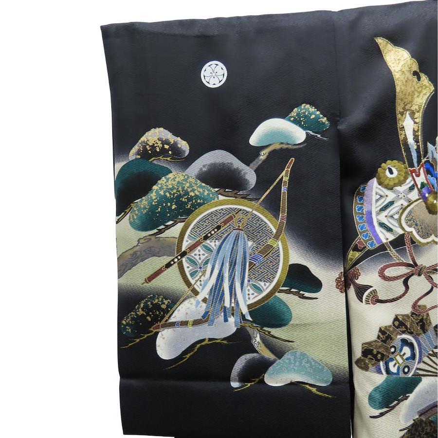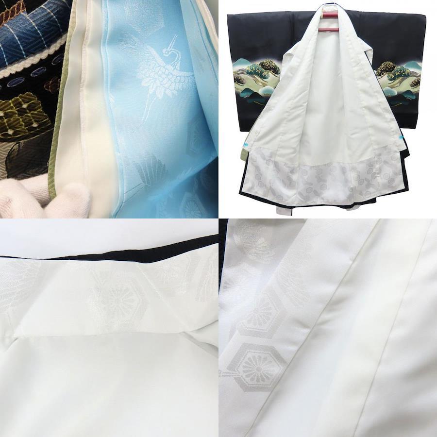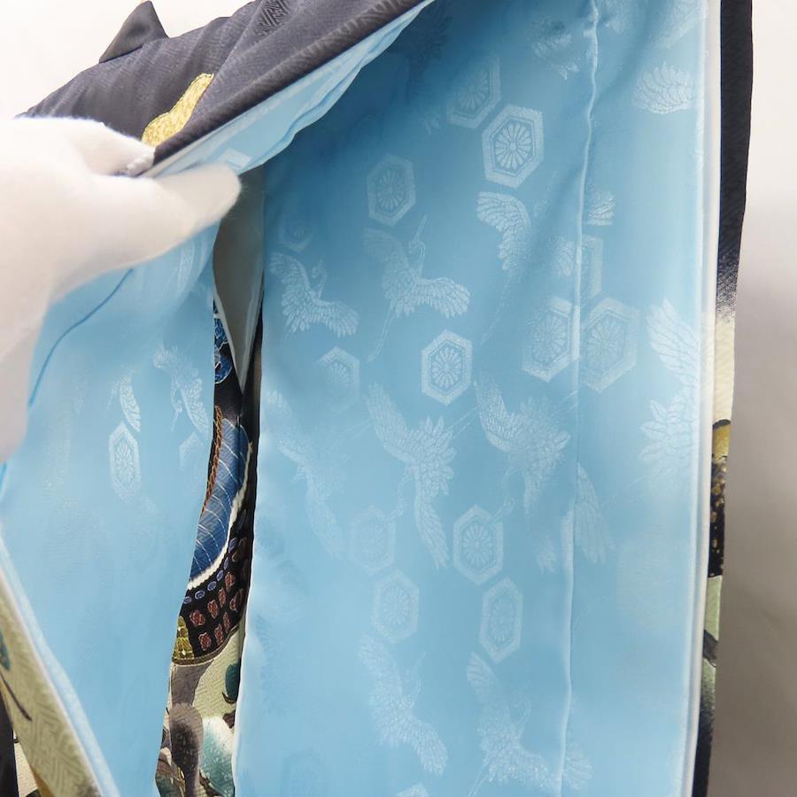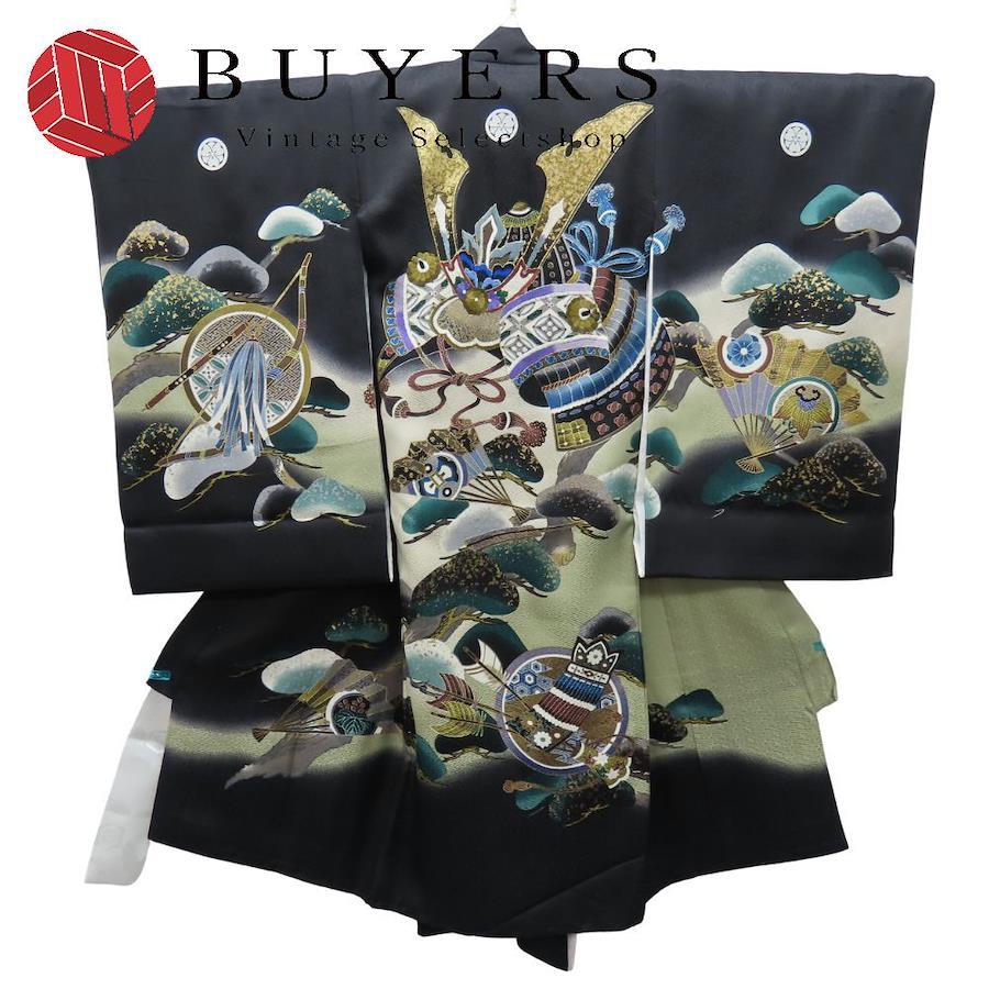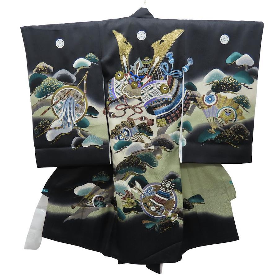 品名【中古】 子供着物 襦袢付き 刺繍 ポリエステル ブラック マルチカラー 男の子 祝い着 お宮参り