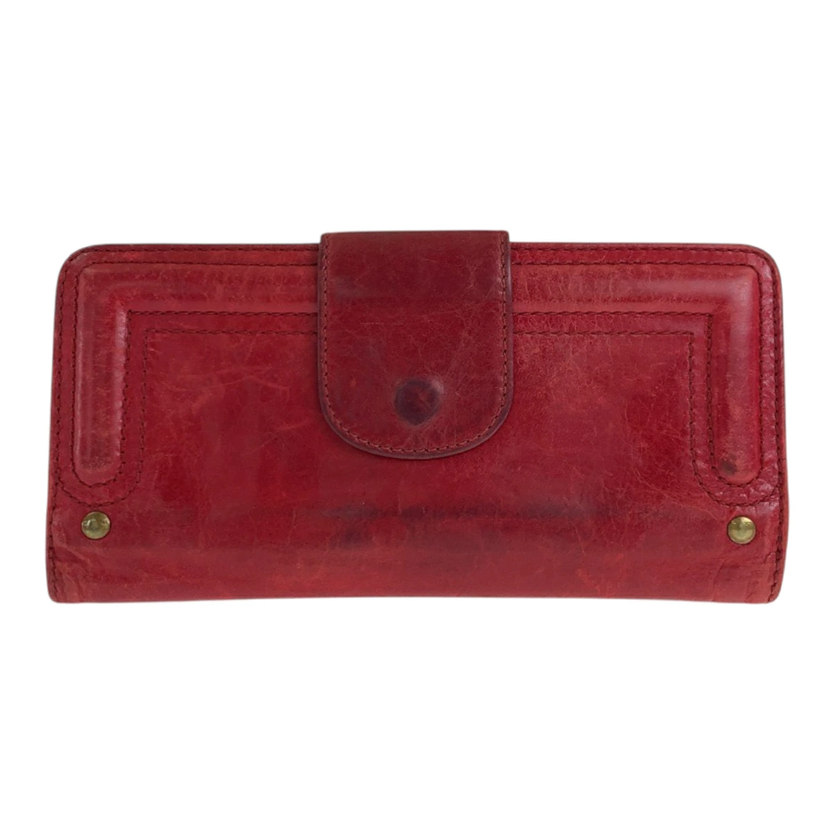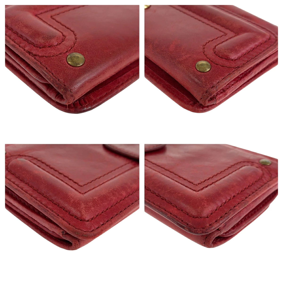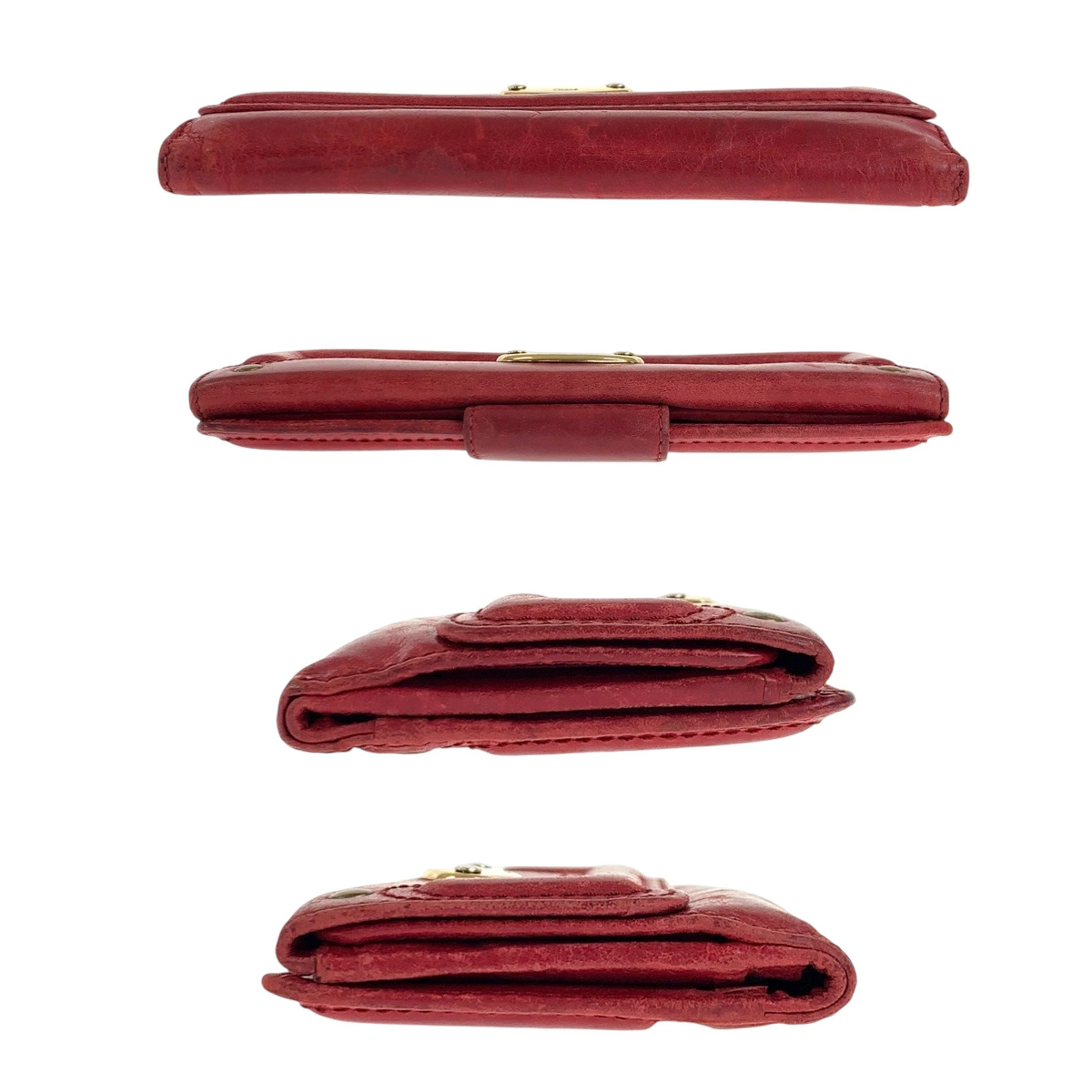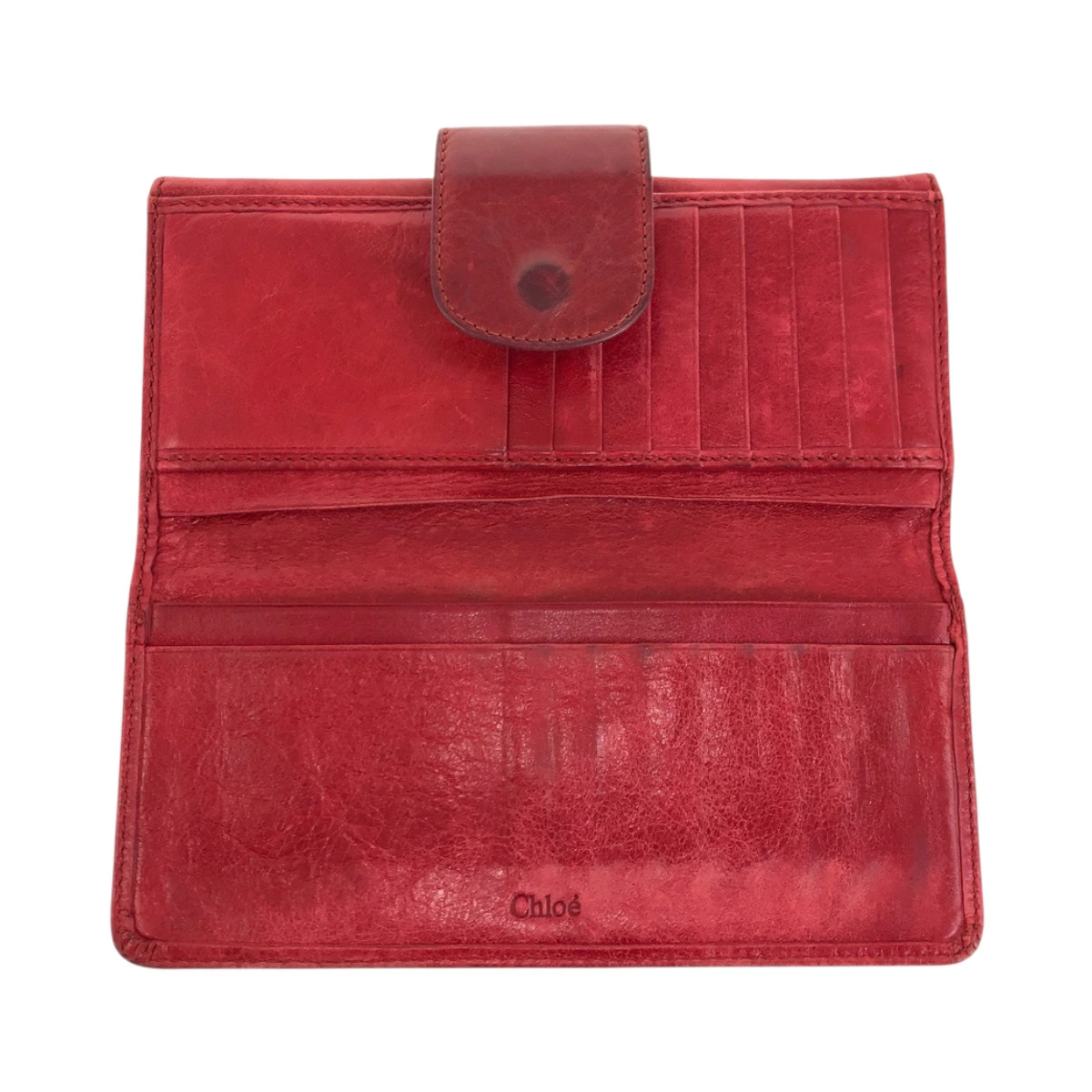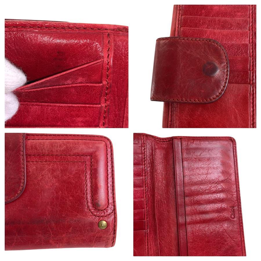 Pre-owned Chloe women's red and gold hardware leather long wallet, model 600417.