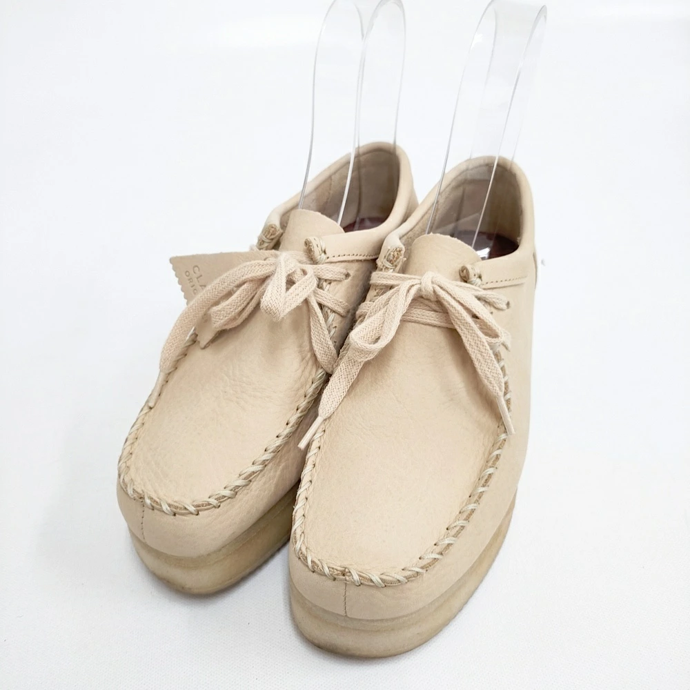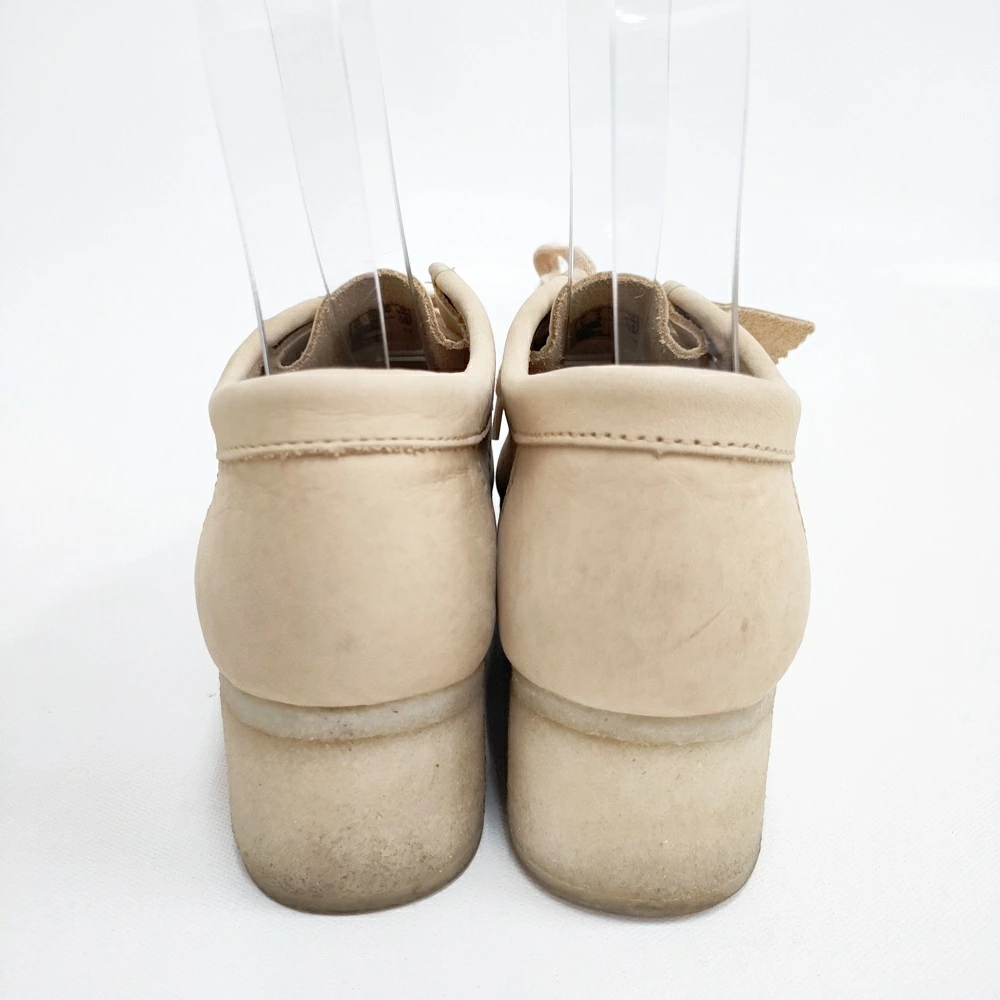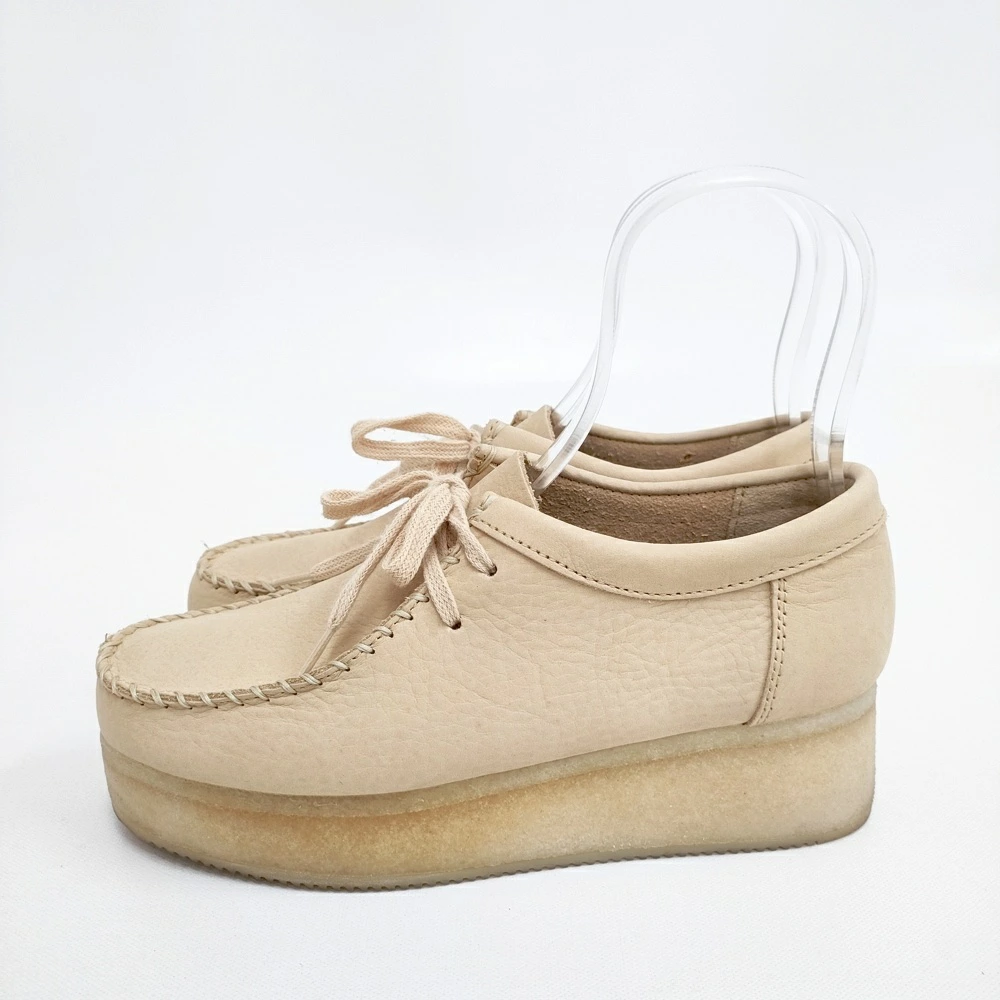 Pre-owned Clarks Wallabees, UK size 5 1/2, beige leather platform shoes for women, 6-0208G.
