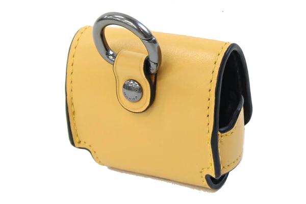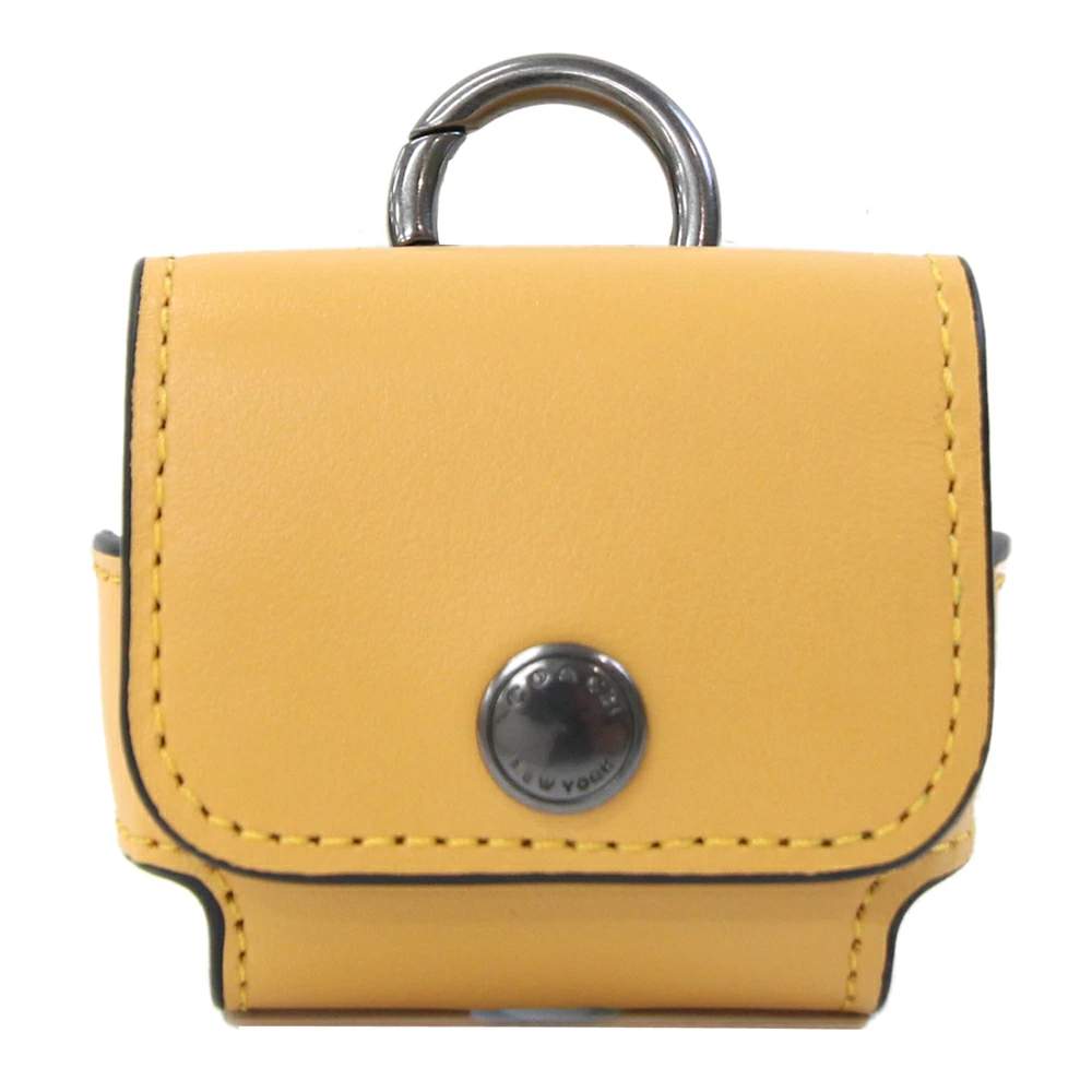 Pre-owned Coach AirPods Pro Wireless Earbud Case, C3749, Yellow Leather, Women's, Bag Charm, Keychain.