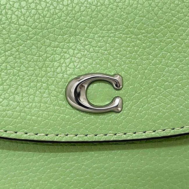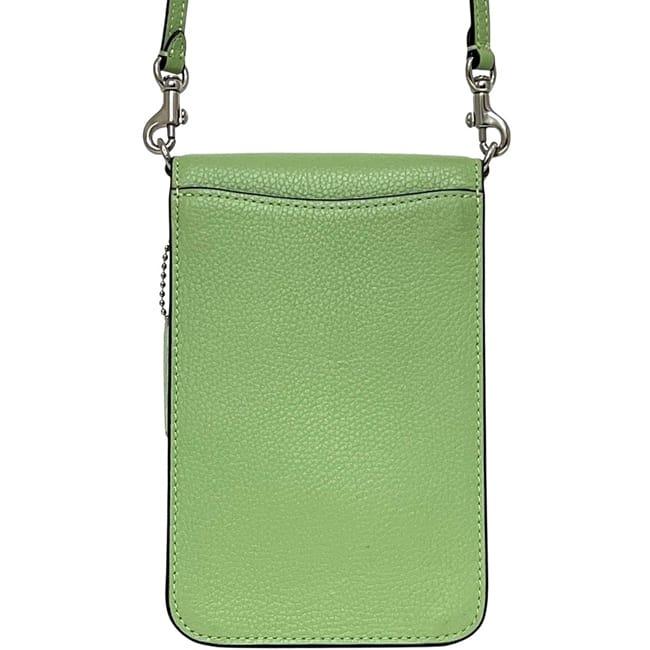 ☆---- 商品について ----☆コーチ ショルダーバッグ ec-24608 ライトグリーン CH815 美品 レザー 中古 COACH スマホショルダー クロスボディ フラップ ロゴチャーム ワンポイント ロゴ 薄黄緑 シンプル レディース 女性 ミニバッグ 斜め掛け 定番 人気 ロゴ金具 ブランド 本物 鑑定済み