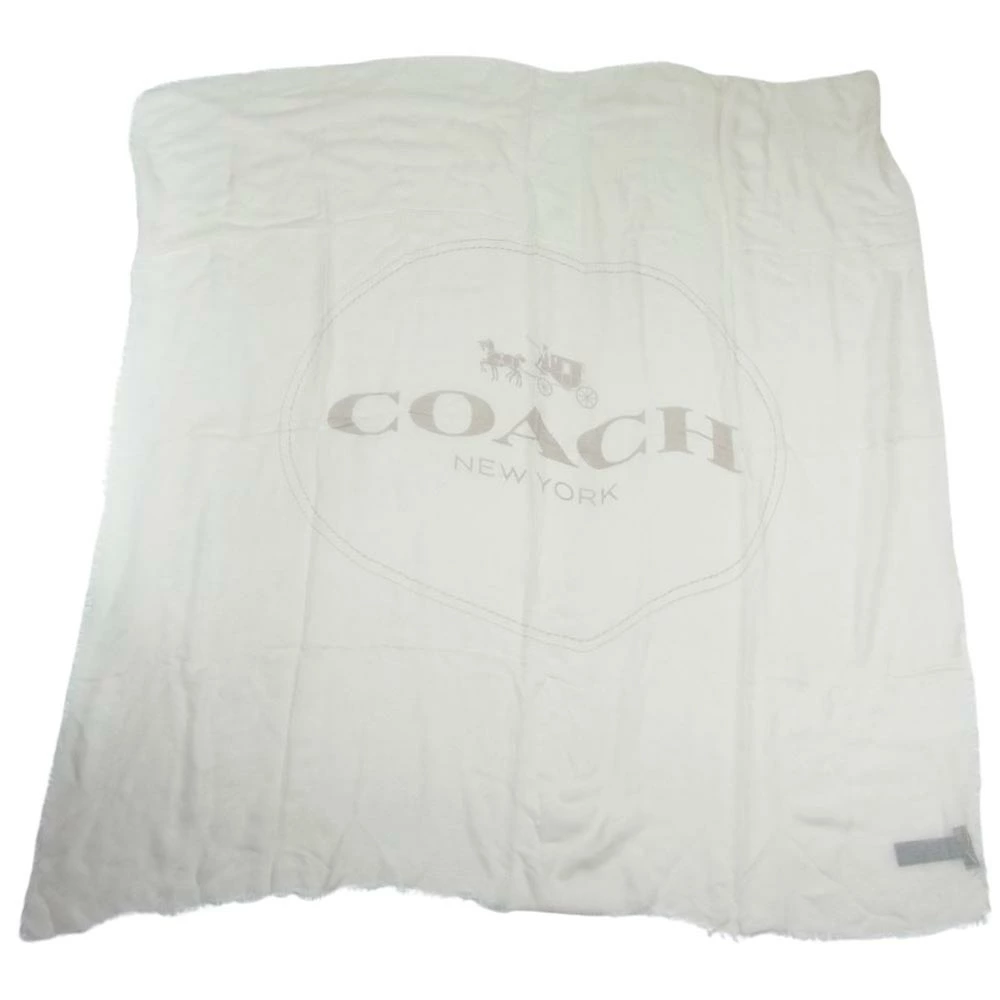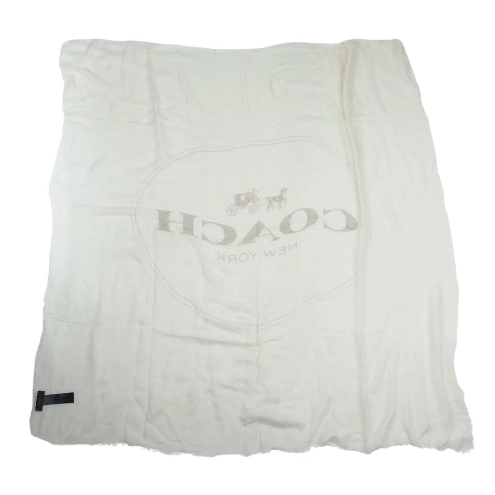 Pre-owned COACH logo design modal cashmere large stole in beige for women.