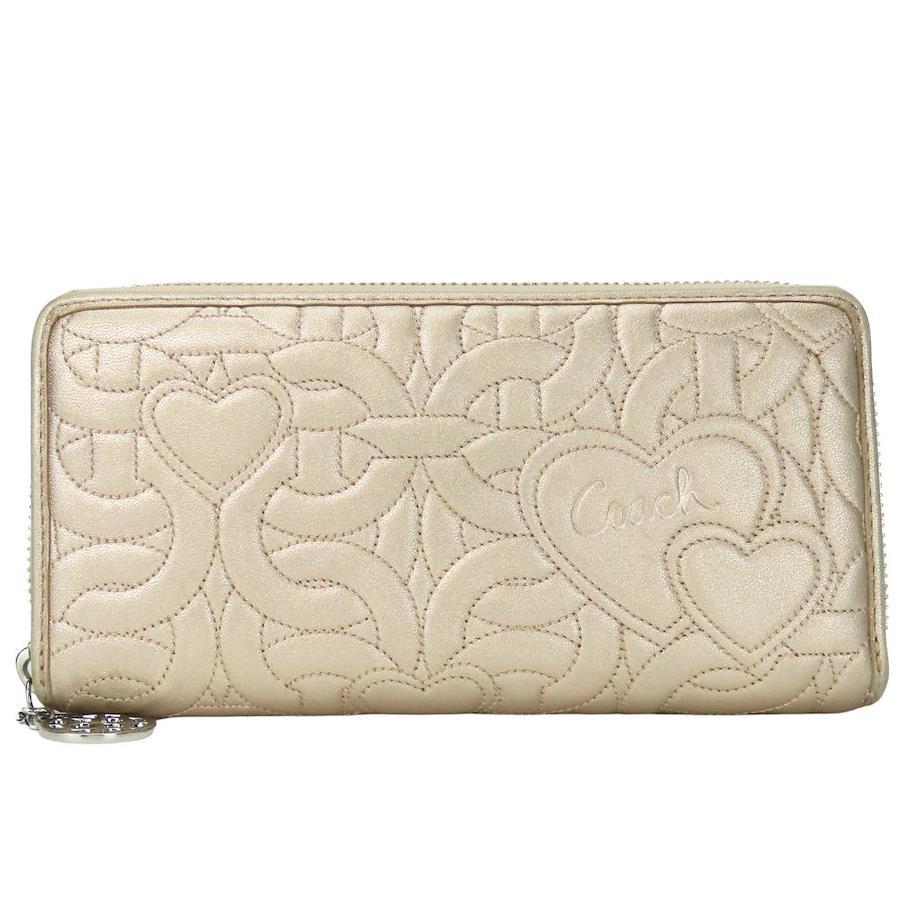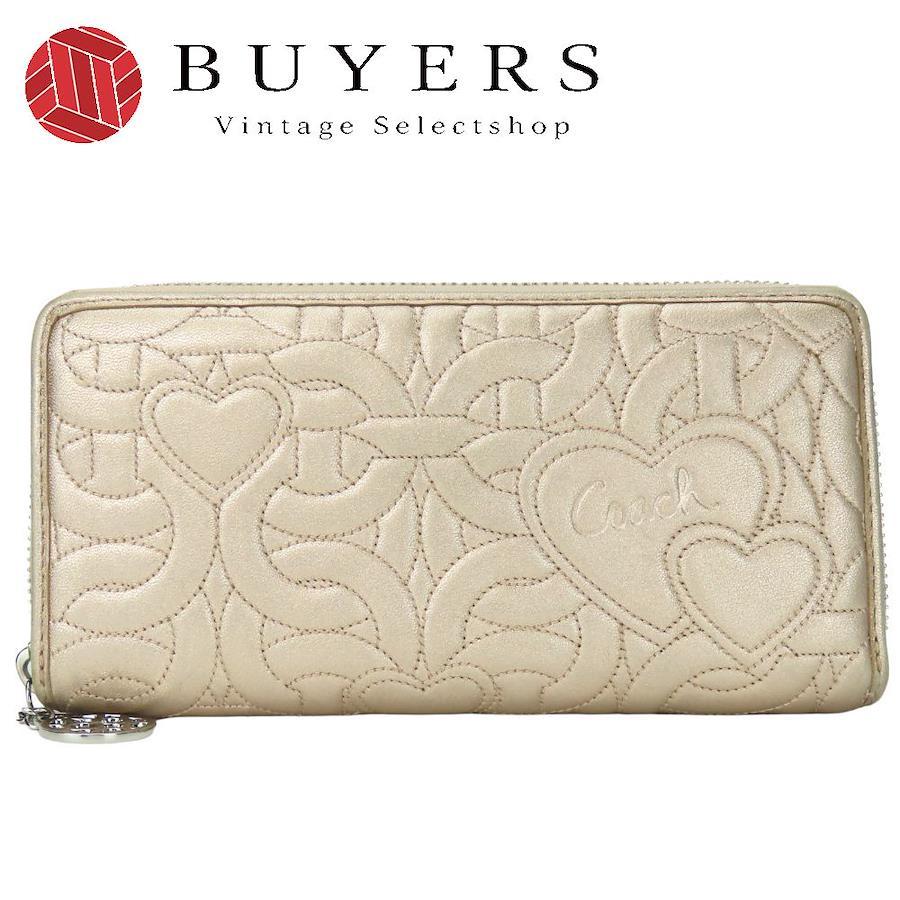 | 品名 | 【中古】 コーチ 長財布 レザー メタリックピンク シルバー金具 ラウンドファスナー ジッピー ハート レディース 女性 COACH |