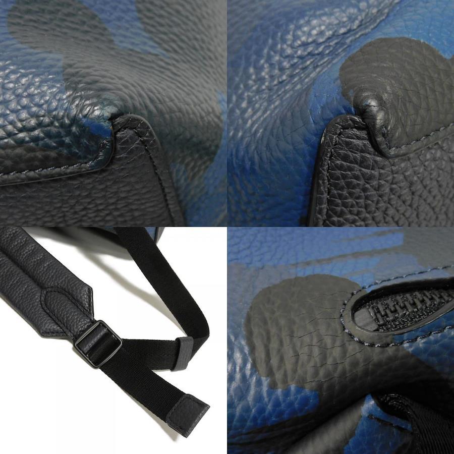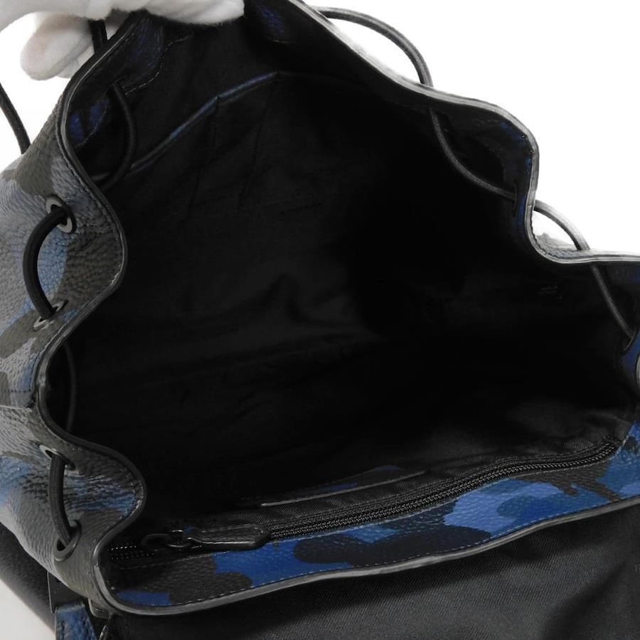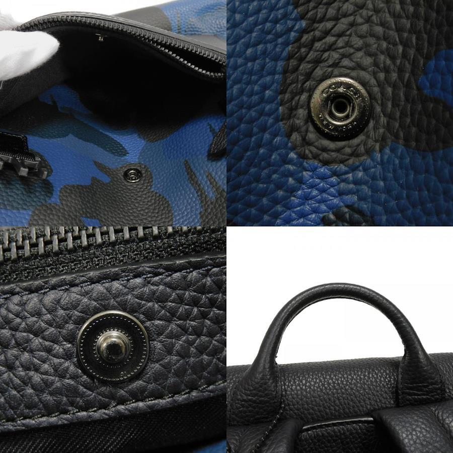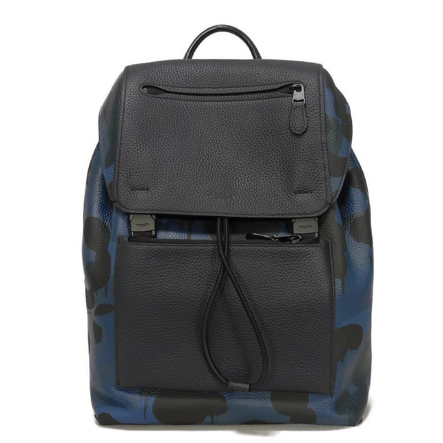 | カモフラージュパターンの型押しカーフレザーに、コーチのロゴがエンボス加工された「マンハッタン プリンテッド デイパック」バックパックです。 |