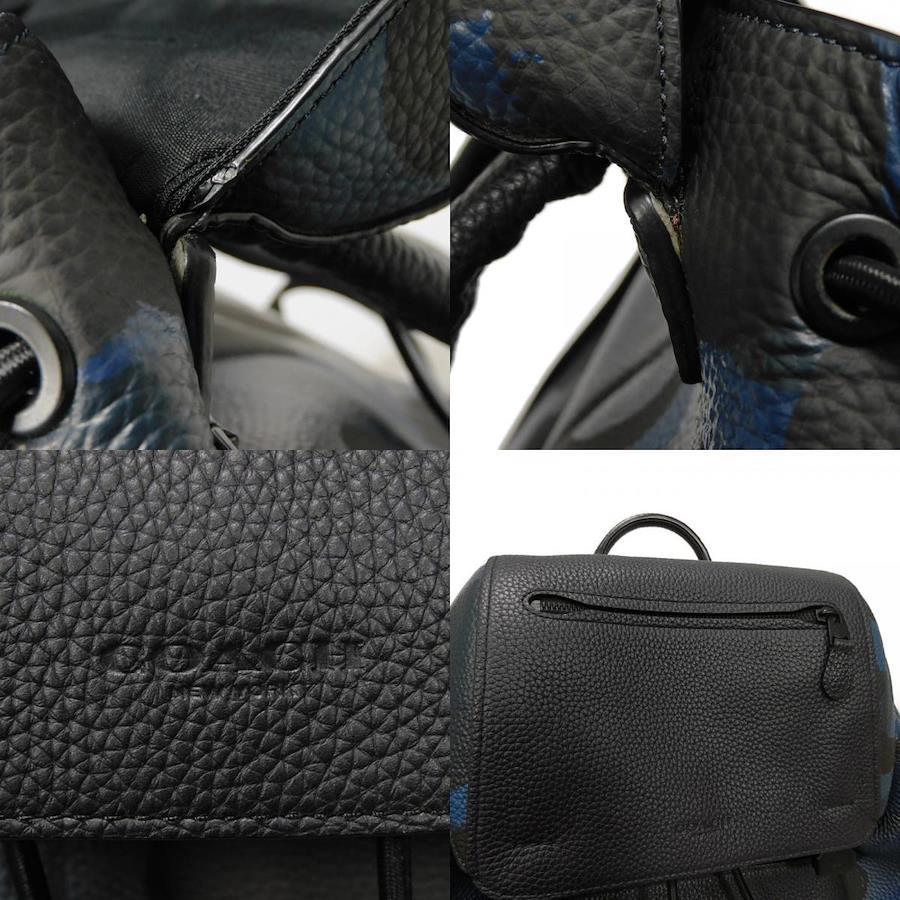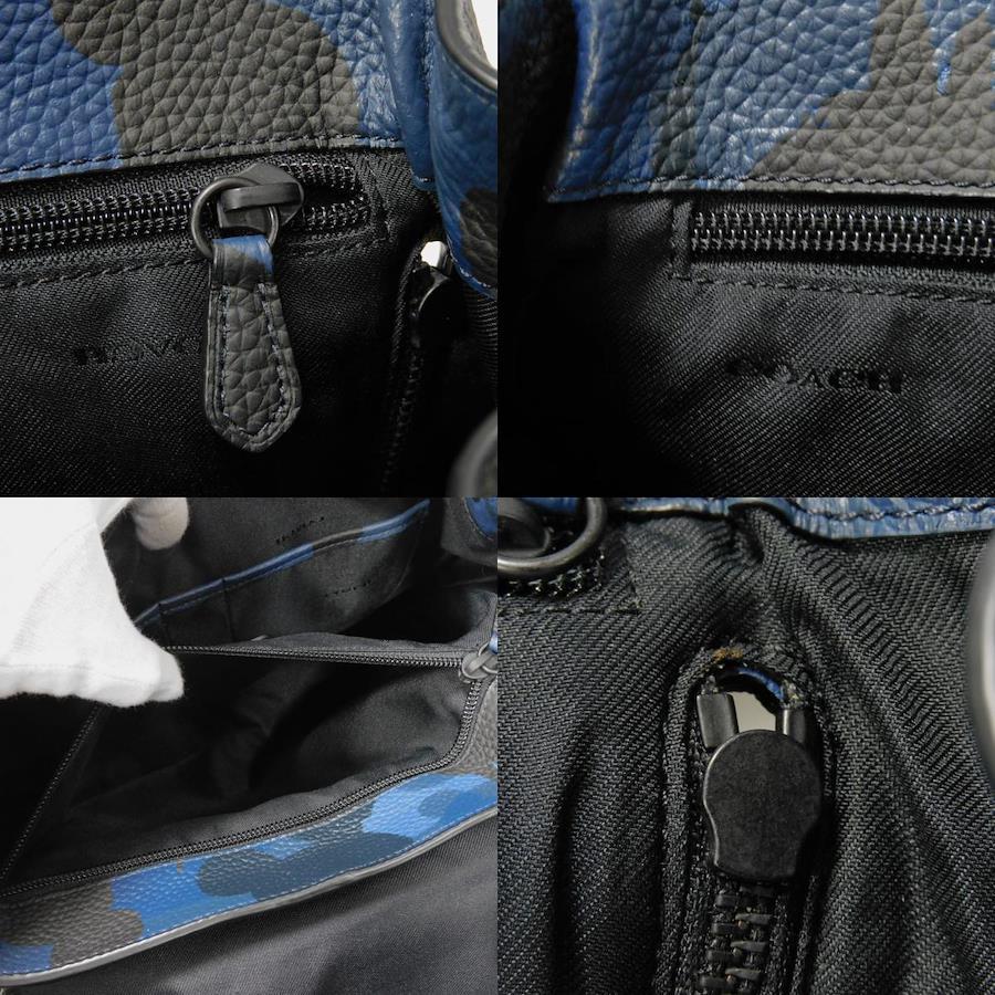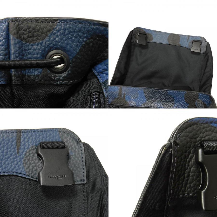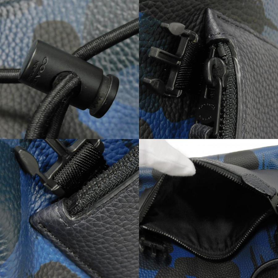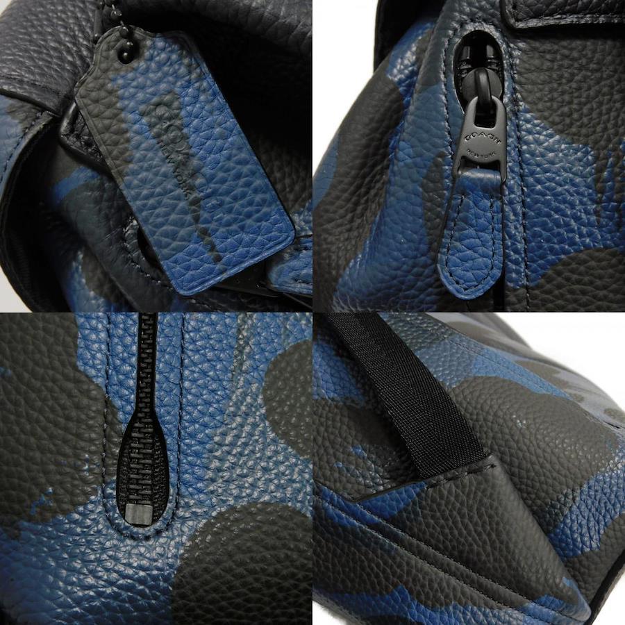 | カモフラージュパターンの型押しカーフレザーに、コーチのロゴがエンボス加工された「マンハッタン プリンテッド デイパック」バックパックです。 |