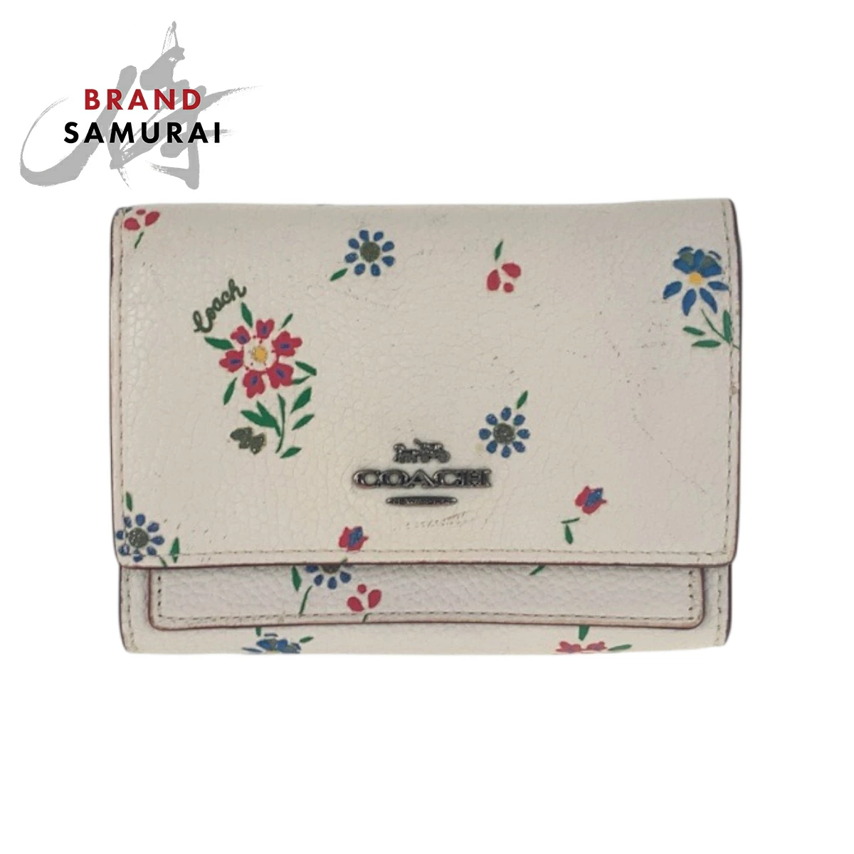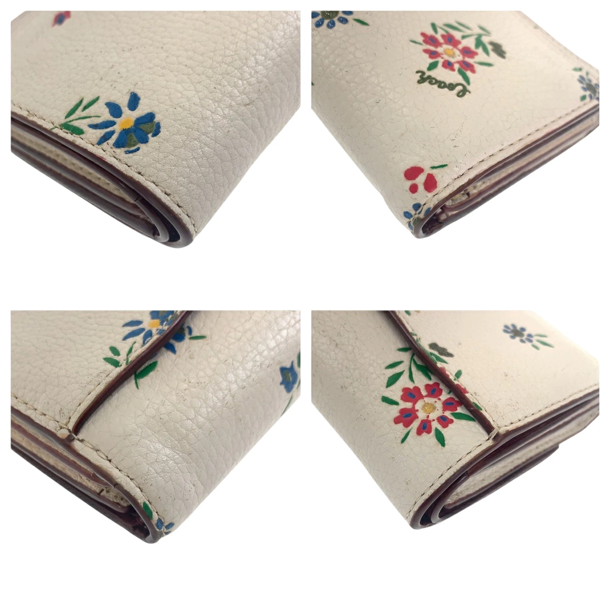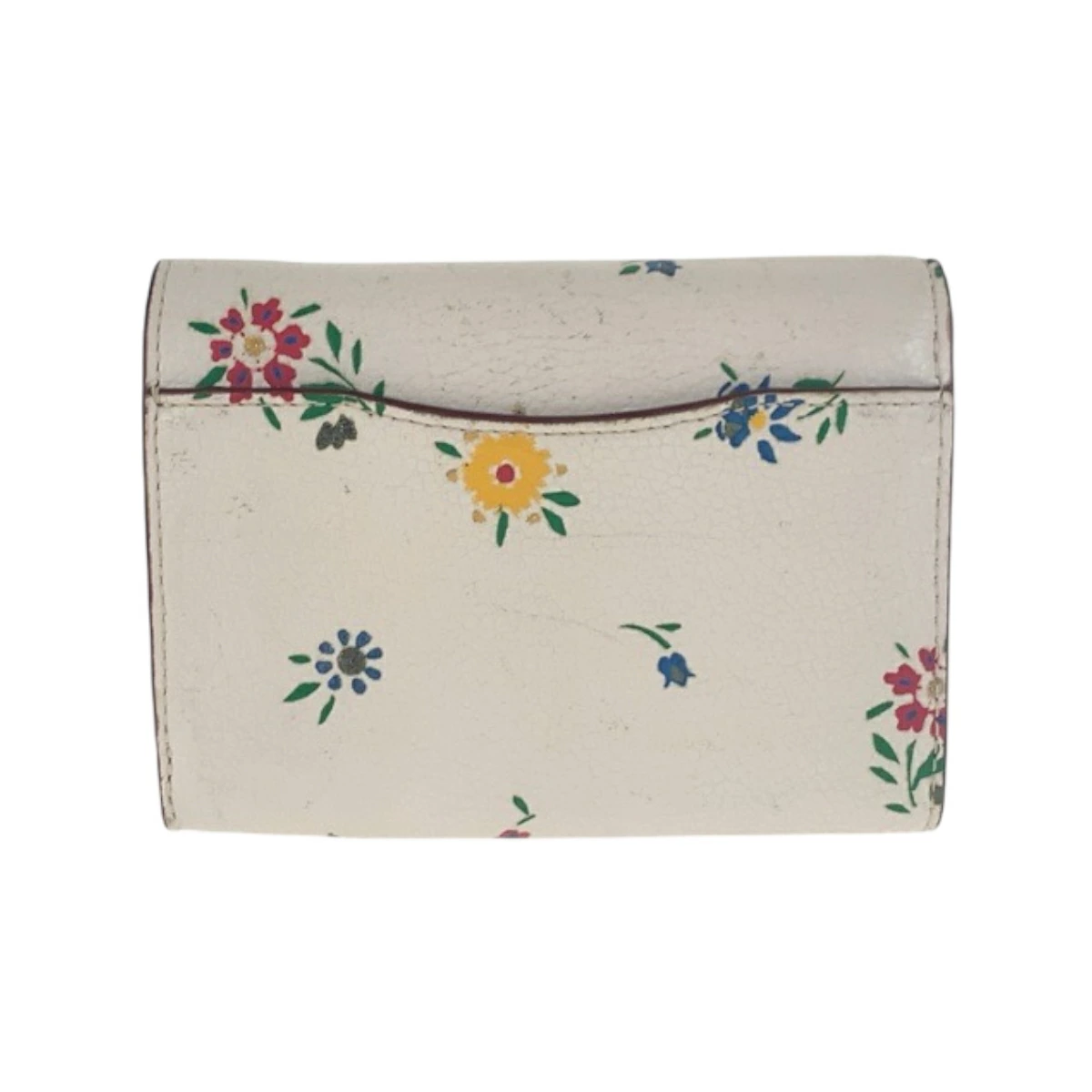 Pre-owned Coach Medium Flap Wallet in White and Multicolored Leather with Flowers, 1352, Compact Wallet, Women's, 600384