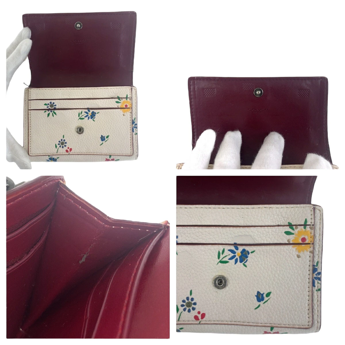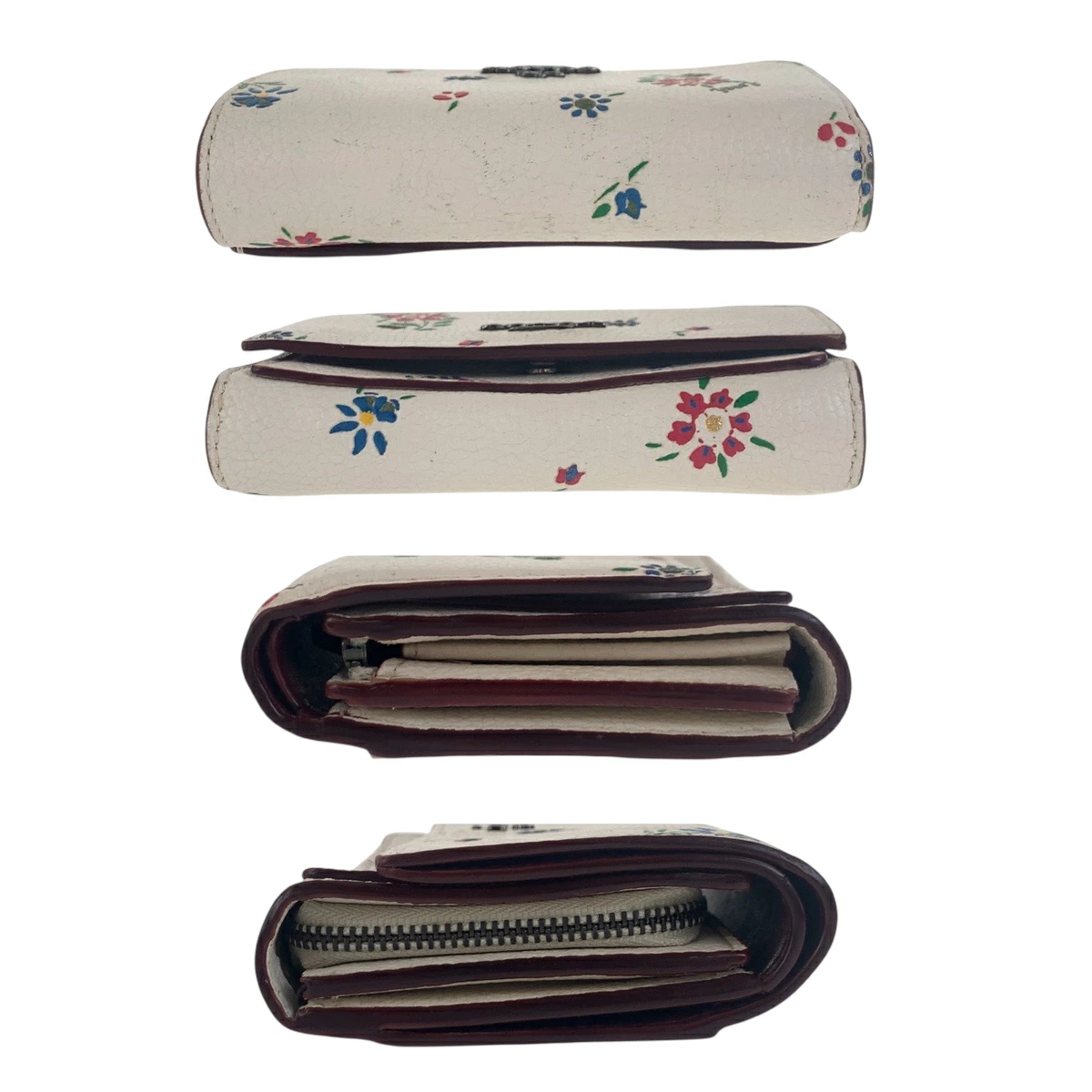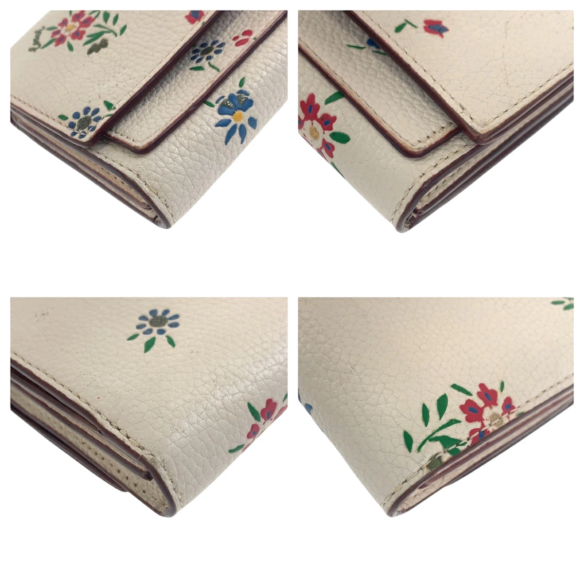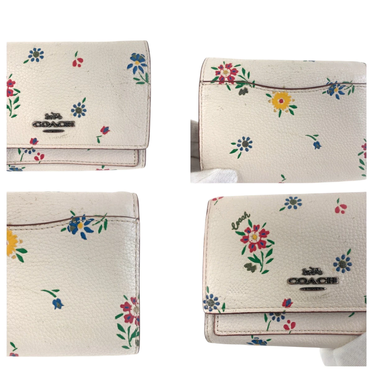 Pre-owned Coach Medium Flap Wallet in White and Multicolored Leather with Flowers, 1352, Compact Wallet, Women's, 600384
