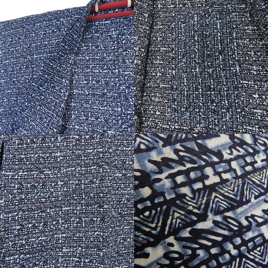 | 品名 | 【中古】 浴衣 綿 紺 ブルー系 白 幾何学模様 モダン お洒落 メンズ 男性 |