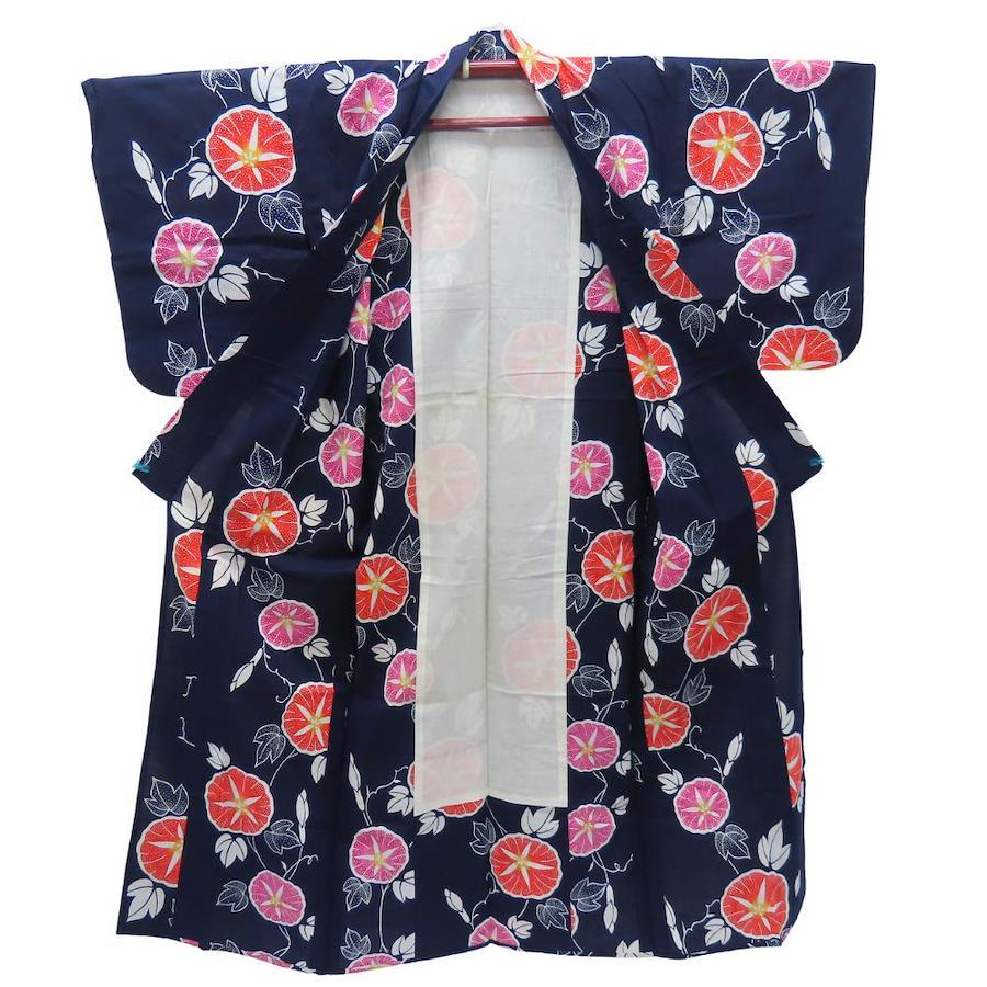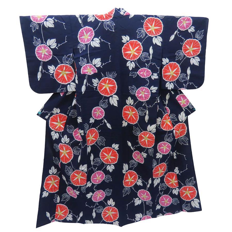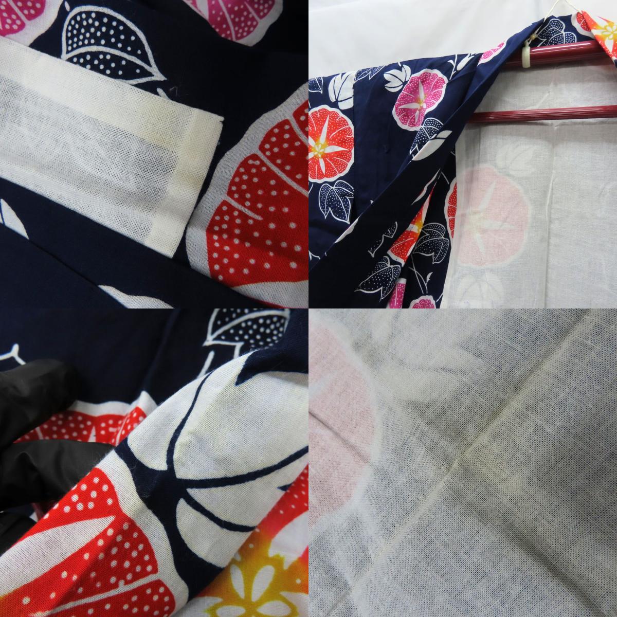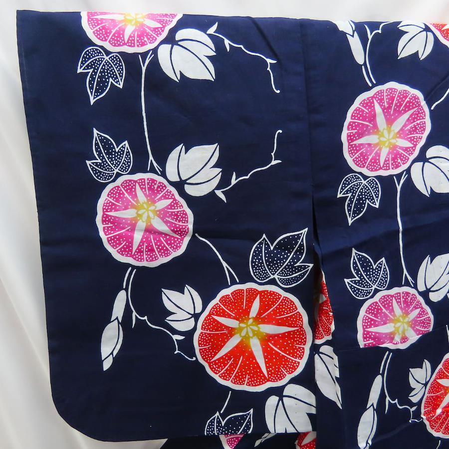 | 品名 | 【中古】 浴衣 綿 紺 白 赤 アサガオ シンプル 大人可愛い レディース 女性 |