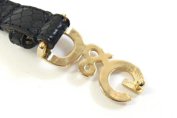 Pre-owned Dolce & Gabbana belt in black and gold python-embossed leather, 85cm, featuring the D&G logo and rhinestones. Women's.