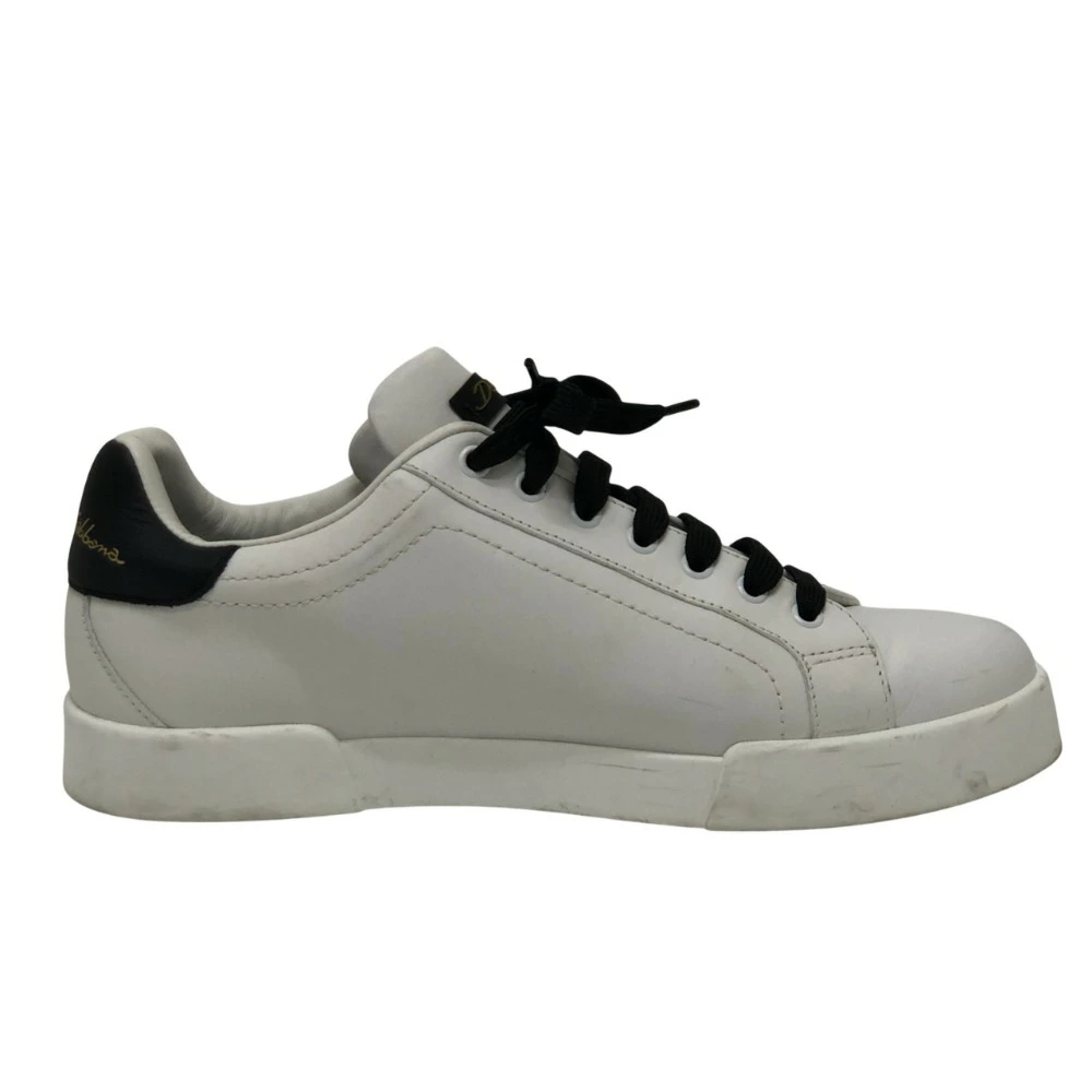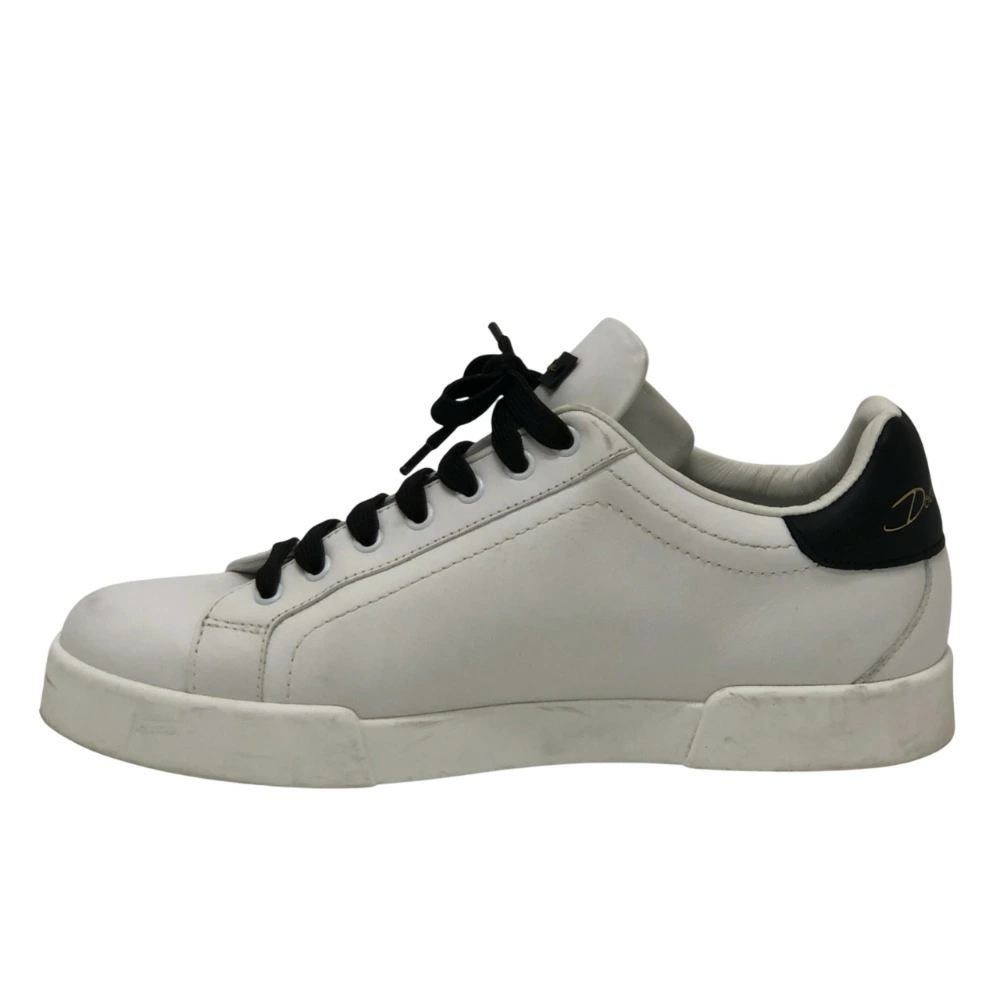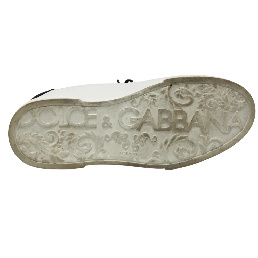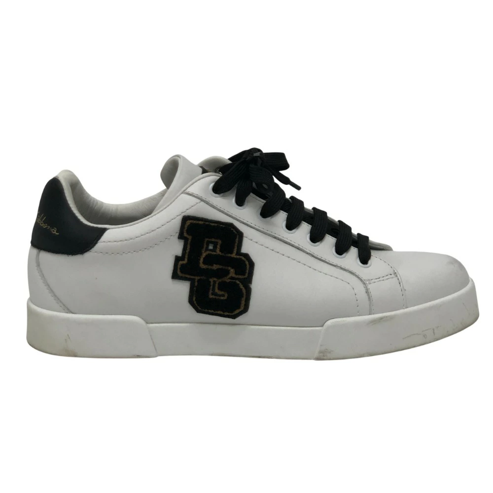 Pre-owned DOLCE & GABBANA DG logo low-top lace-up leather sneakers in white for men.