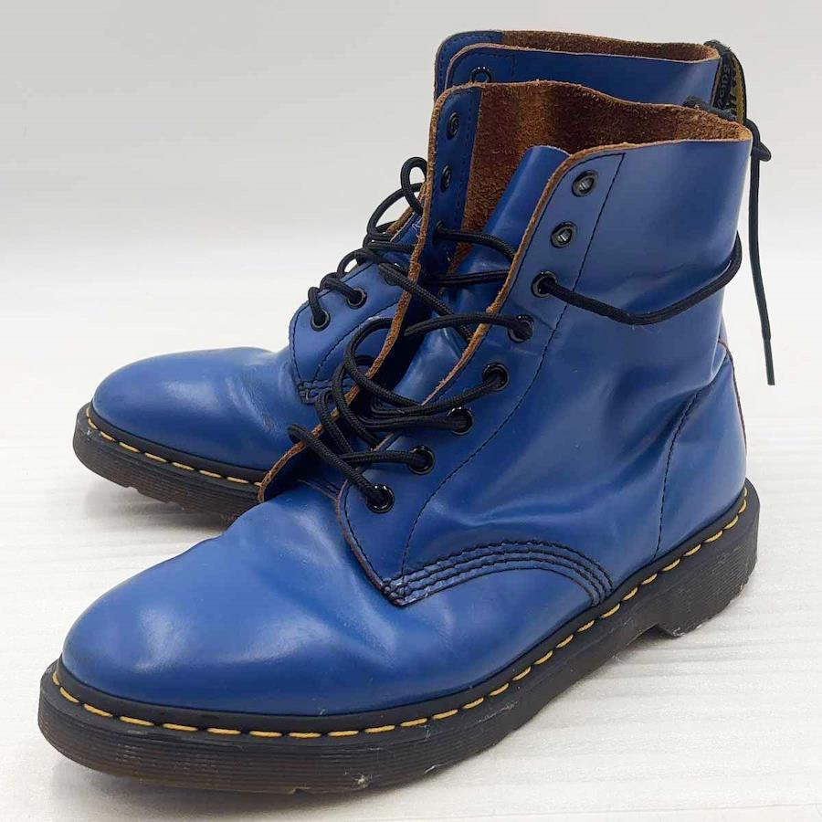 [ブランド] DR. MARTENS ドクターマーチン[タイプ] 8ホール ブーツ UKサイズ9 28cm[対象] メンズ[カラー] ブルー[サイズ] ヒールの高さ:約3.5cm全体の高さ:約19cm[状態] 使用感があり、ダメージや汚れがみられます。