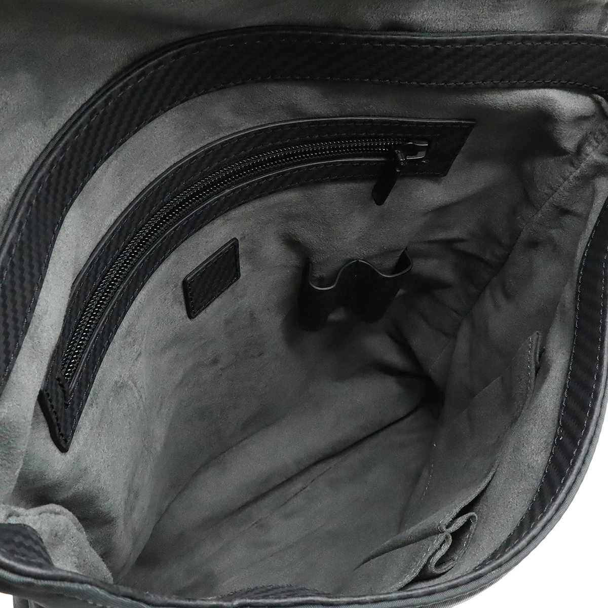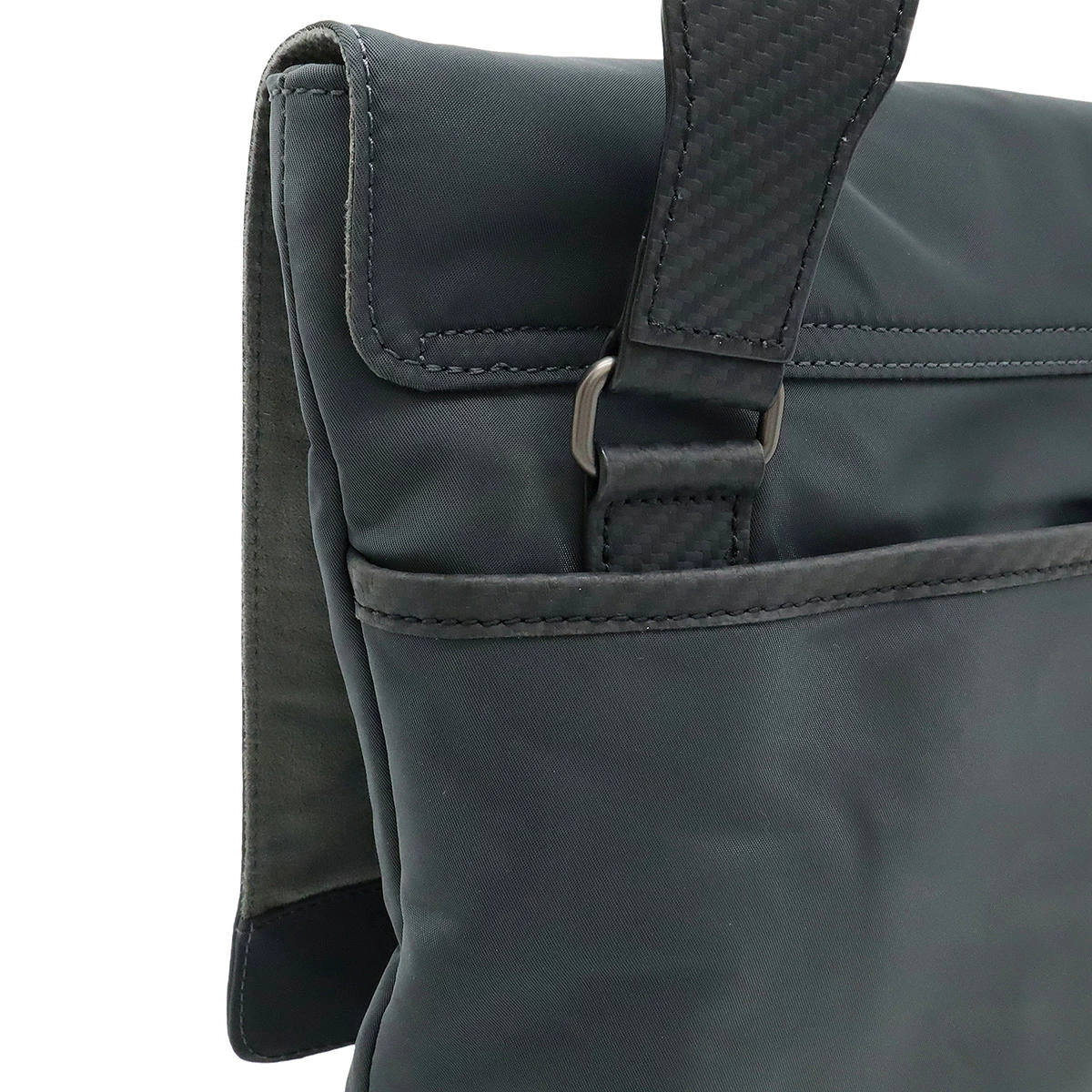 表面にカーボンファイバプリントがエンボスされたカーフレザーと撥水性に優れたナイロンを合わせたシリーズ。