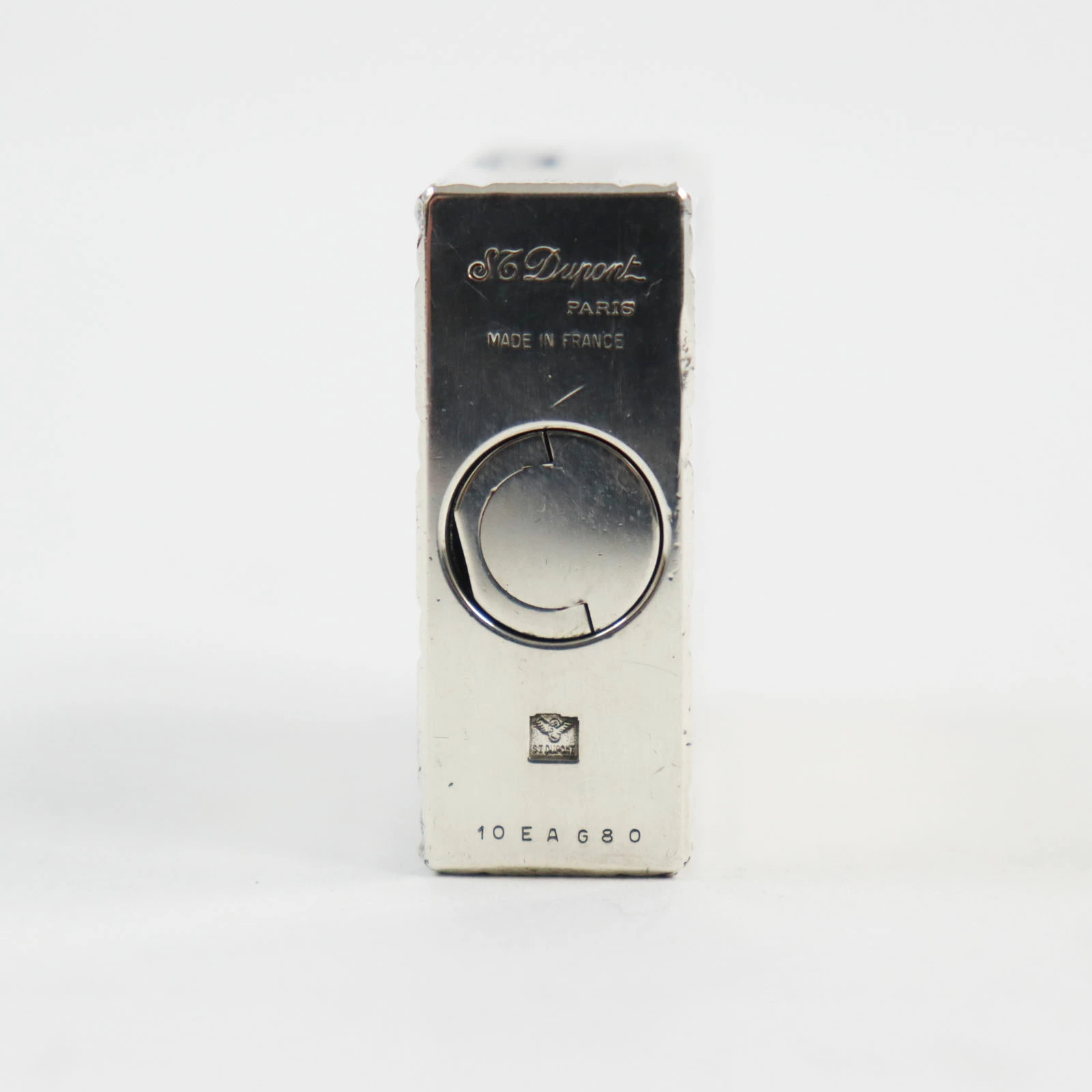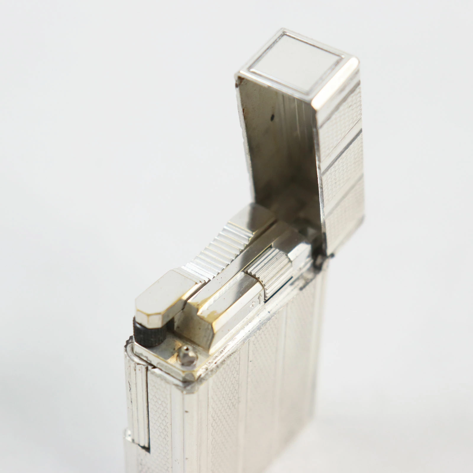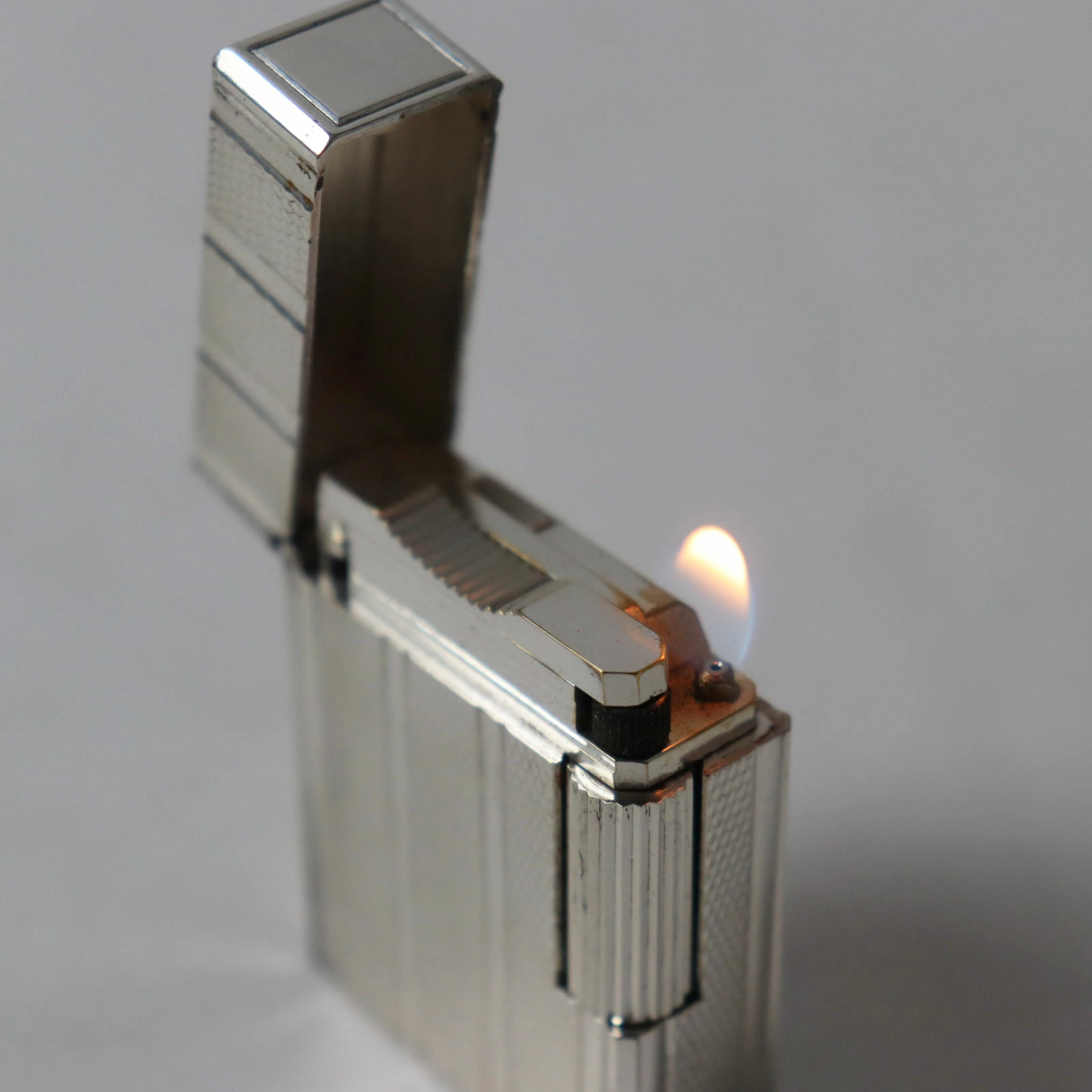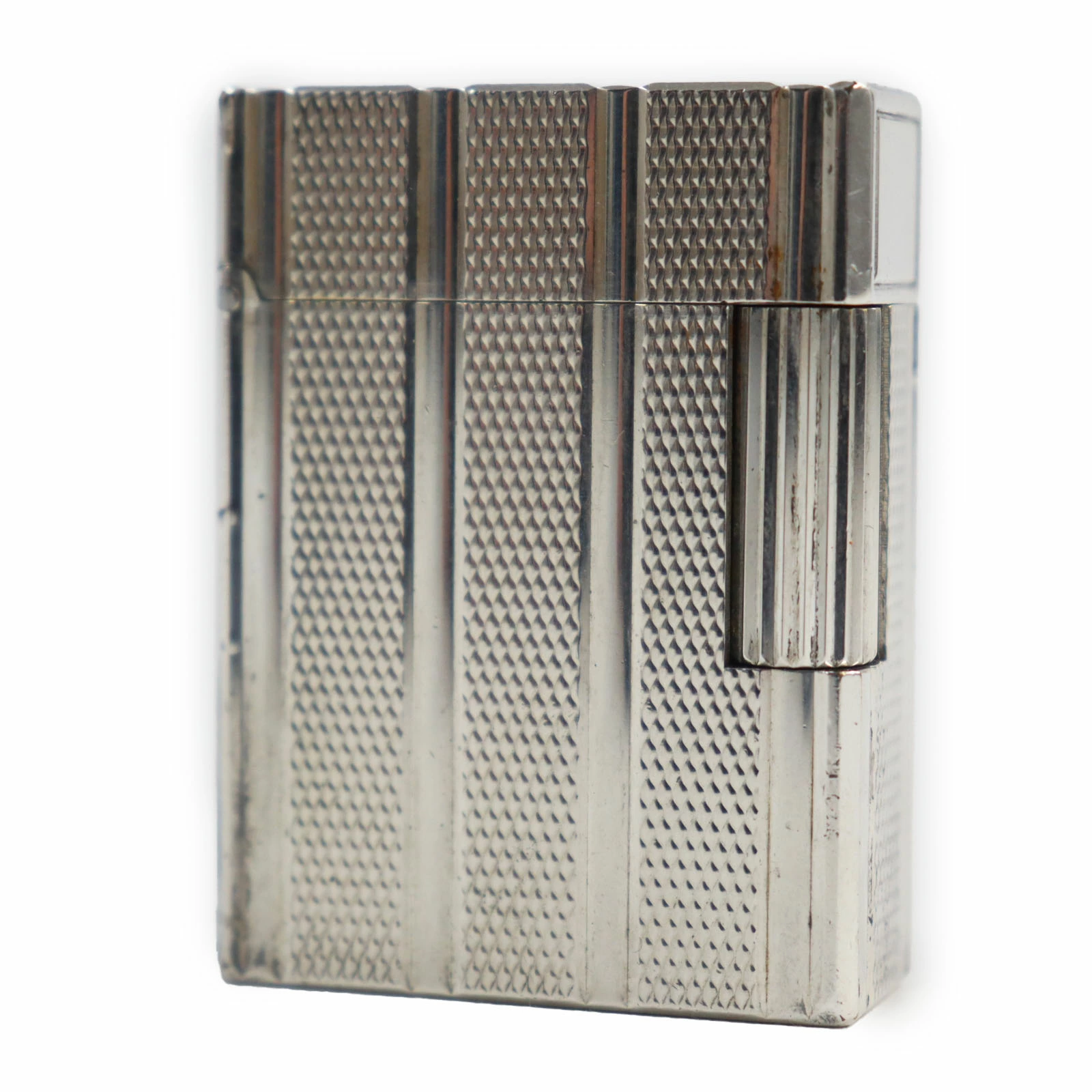 Pre-owned Dupont Line 1 Short Striped Roller Gas Lighter, Silver, Made in France, Men's, Excellent Condition, Ignition Tested.