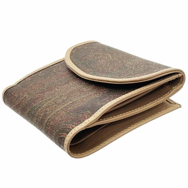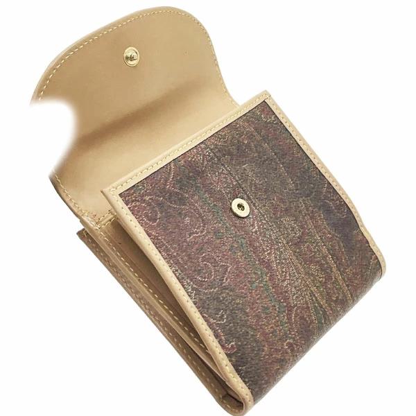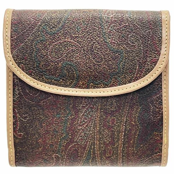 Pre-owned Etro Paisley Double-Hook Wallet in PVC and Leather with Multicolored Brown Trim. This compact, mini wallet comes with a box.