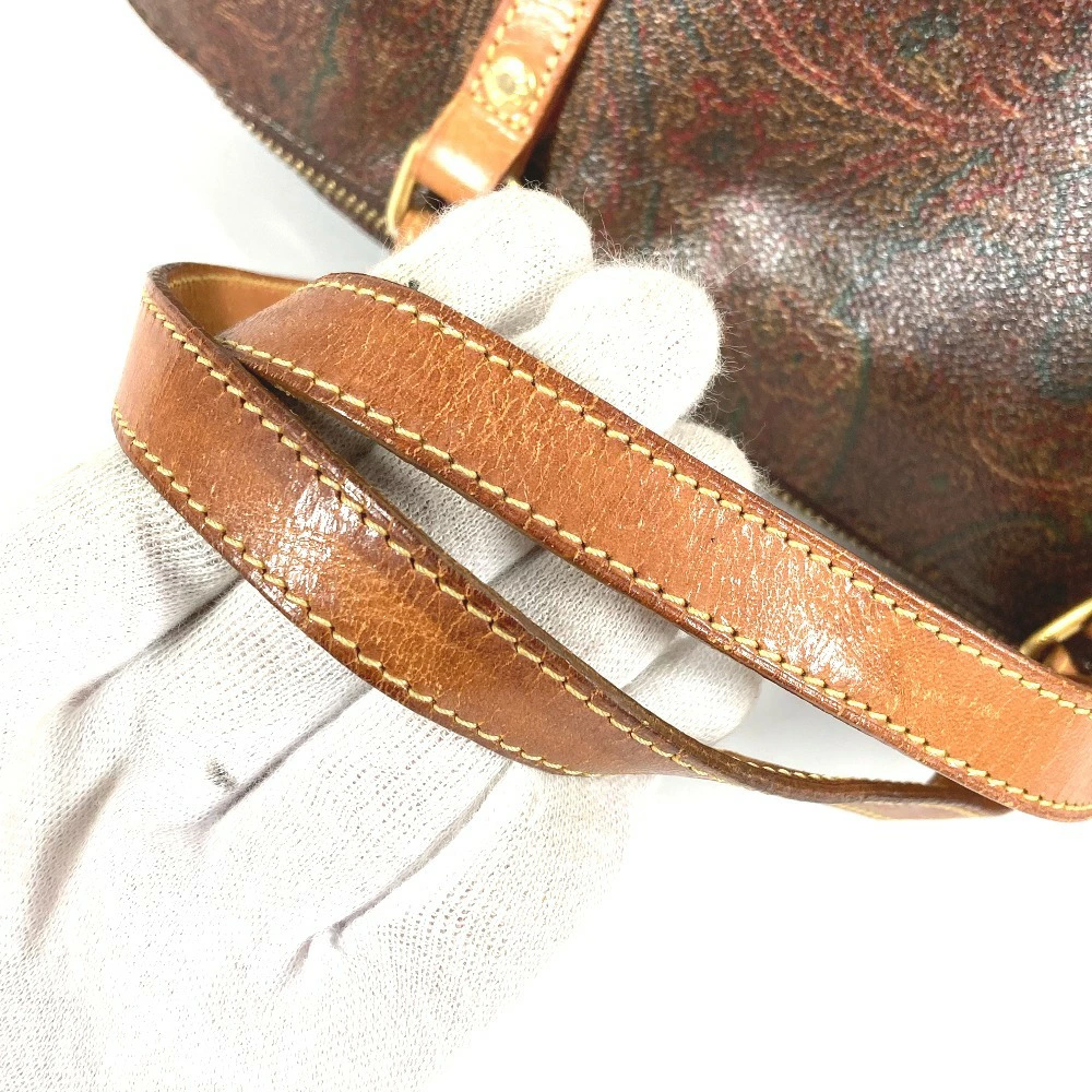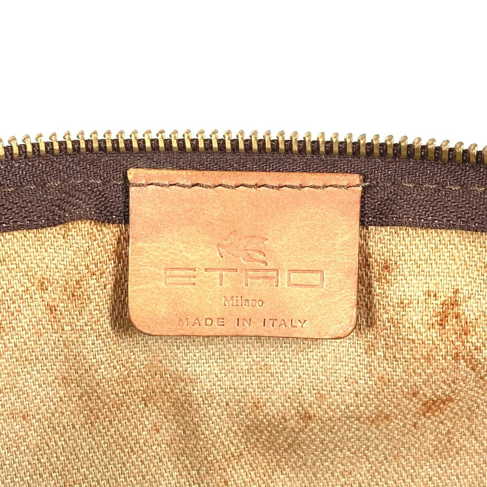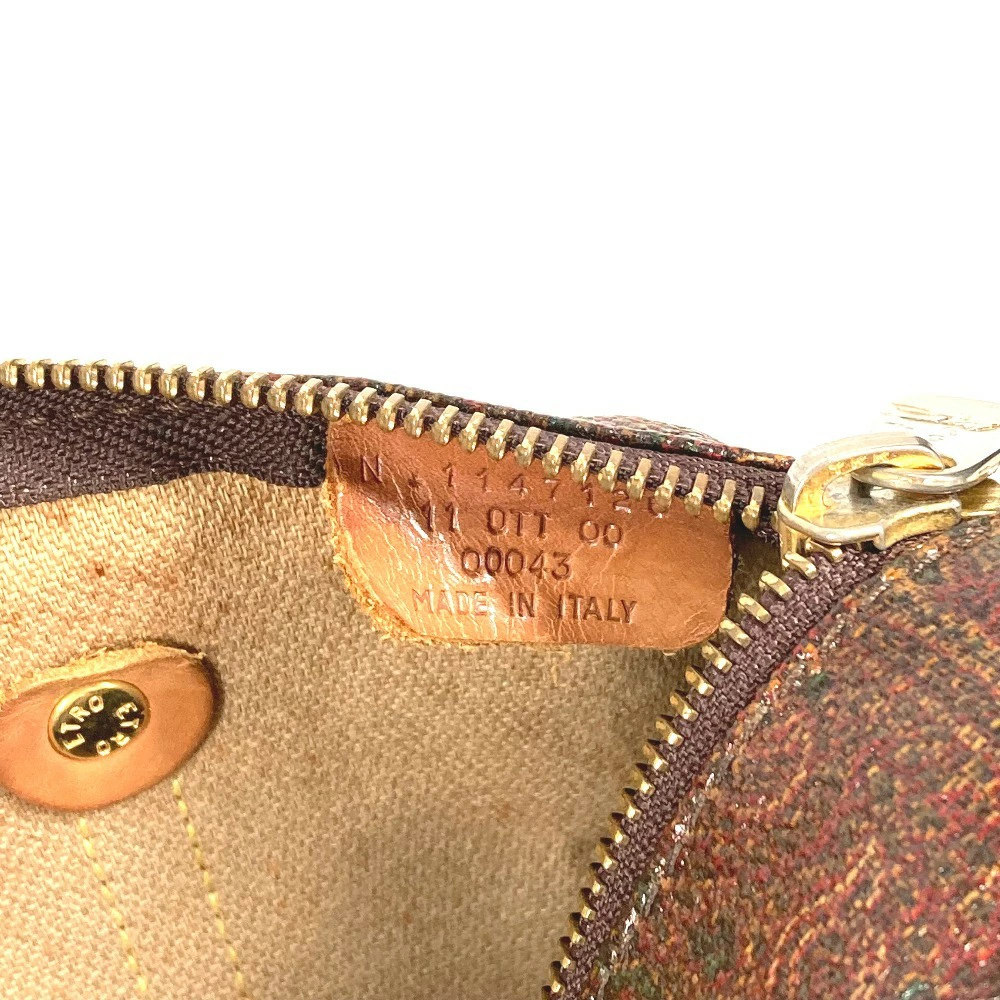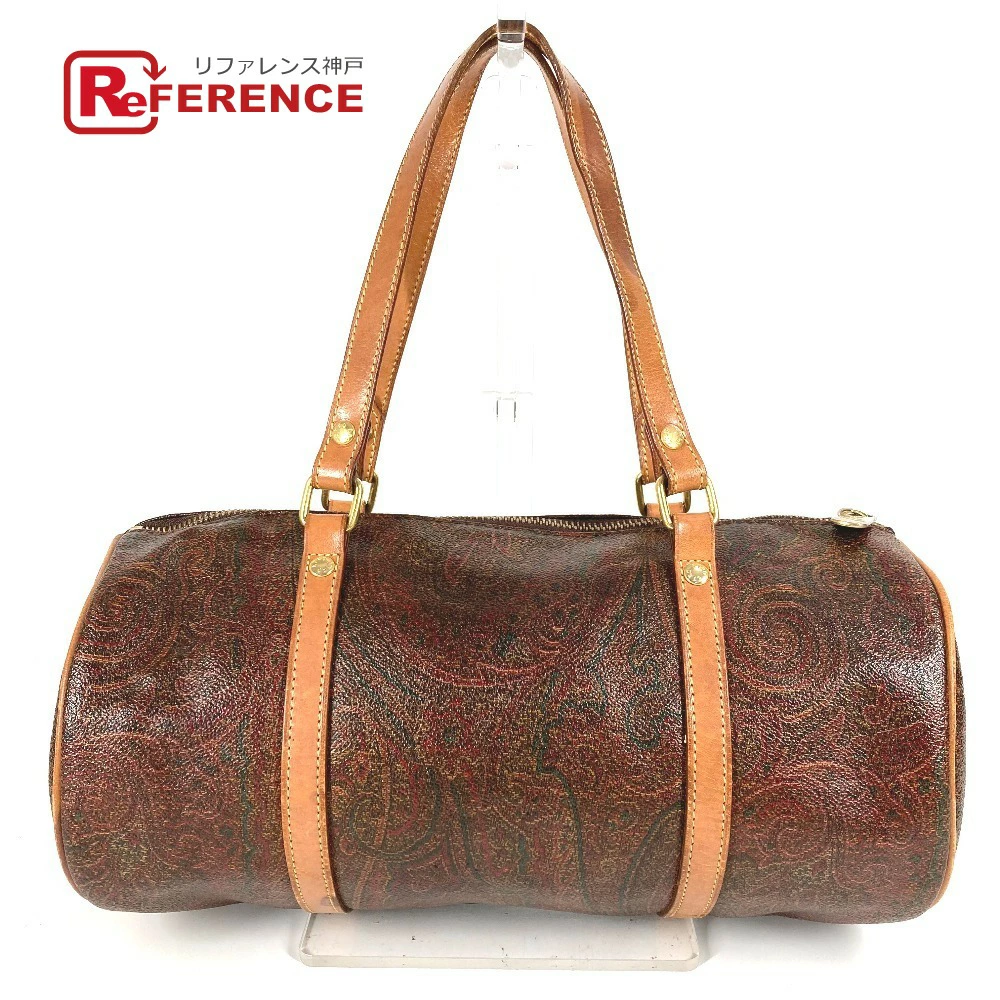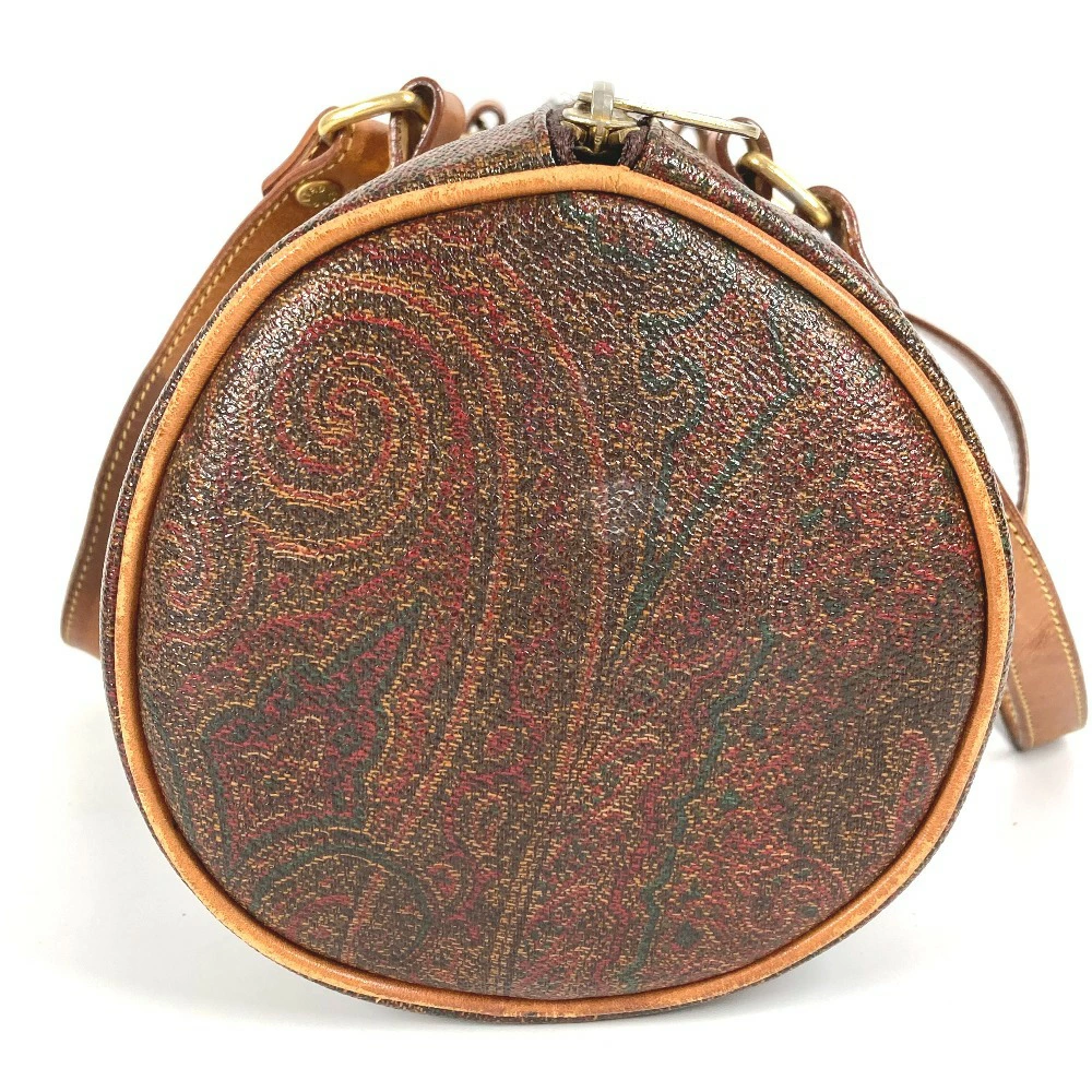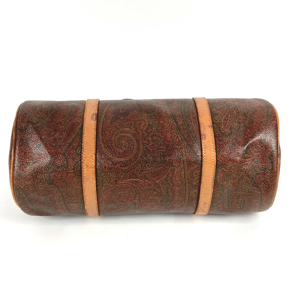 Pre-owned ETRO paisley-patterned cylindrical handbag in PVC and leather, brown.