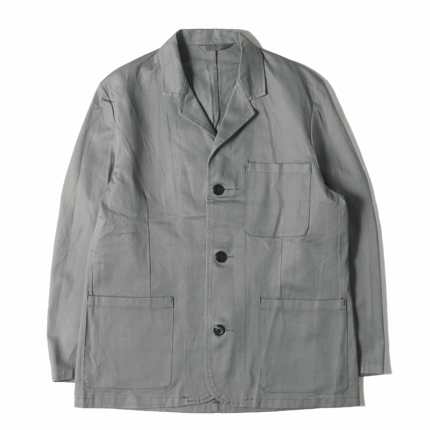 Pre-owned Euro Vintage Men's British Railways Cotton Satin Three-Button Work Jacket, Size 12 (L-XL) from the 1970s to 1980s. Grey.