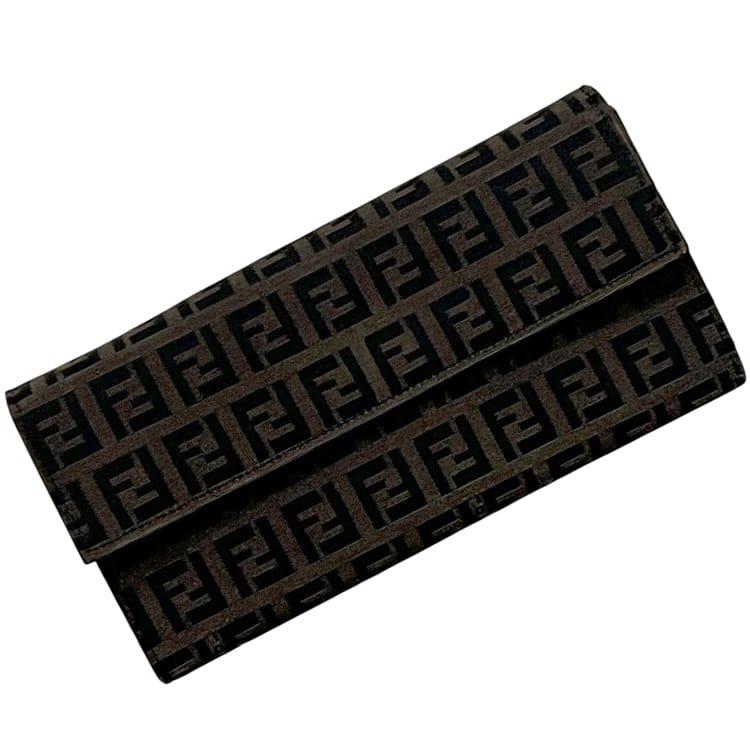 ☆---- 商品について ----☆フェンディ 二つ折り 長財布 ec-24290 ブラウン ズッキーノ 8M0025 財布 キャンバス レザー 中古 FENDI FF ロゴ ホック 総柄 箱付き 茶色 総柄 定番 人気 メンズ レディース 男女兼用 ヴィンテージ シンプル キャンバスウォレット ロング ブランド 本物 鑑定済