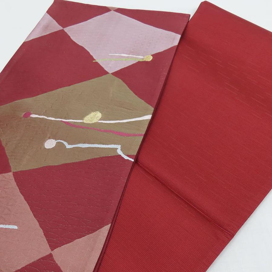 品名【中古】 袋帯 正絹(金銀糸除く) えんじ ボルドー 洒落 レディース 女性