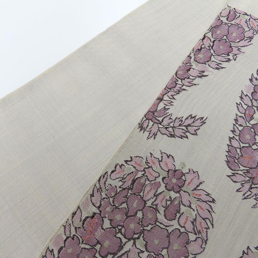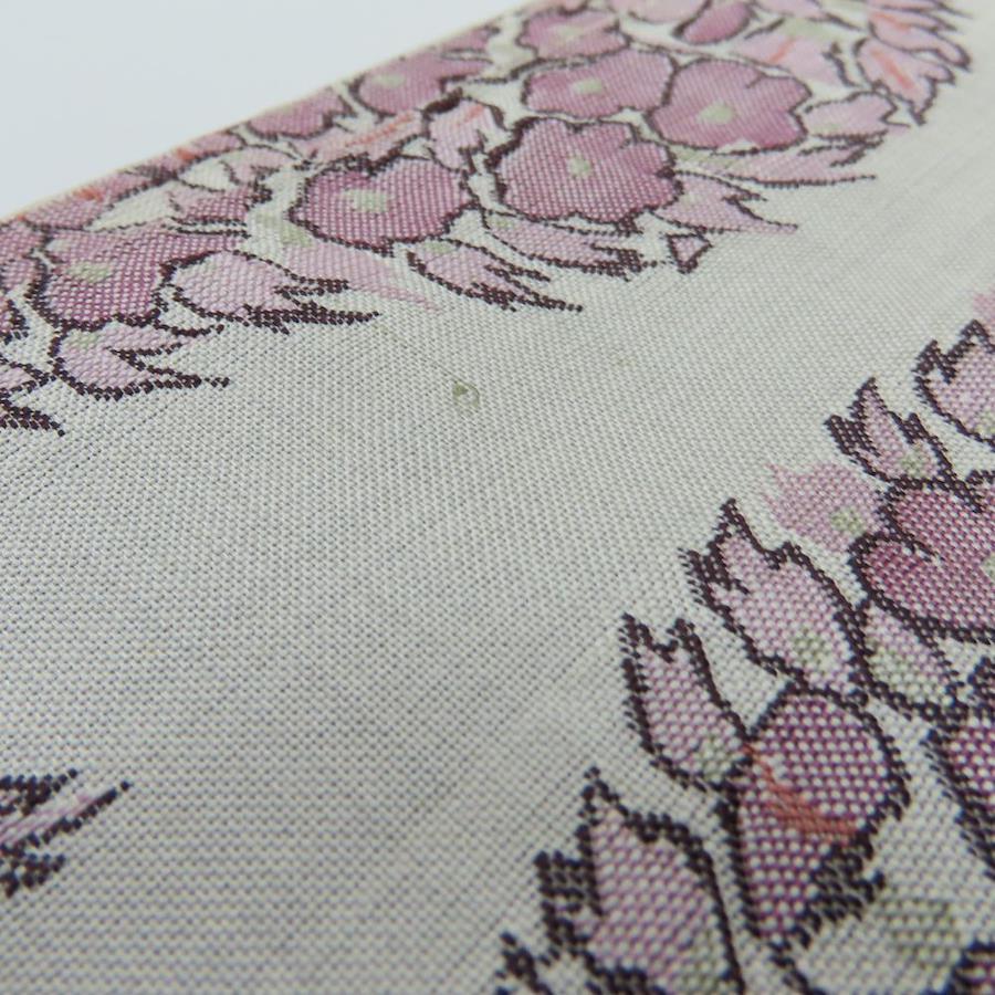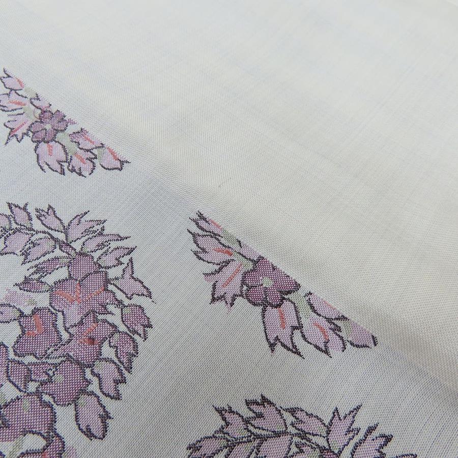 | 品名 | 【中古】 袋帯 正絹(金銀糸除く) 灰色 藤色 白 藤の花 勾玉模様 レディース 女性 |