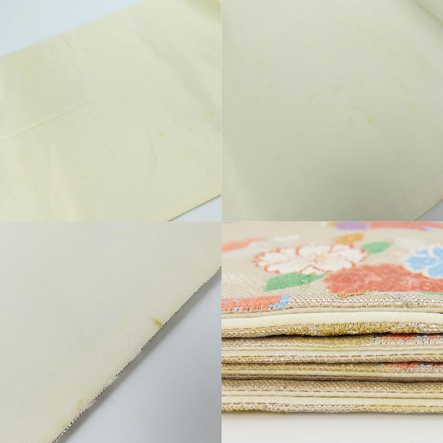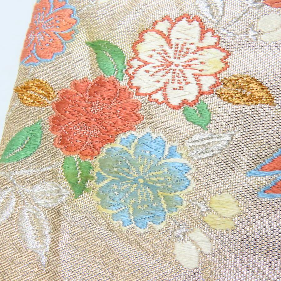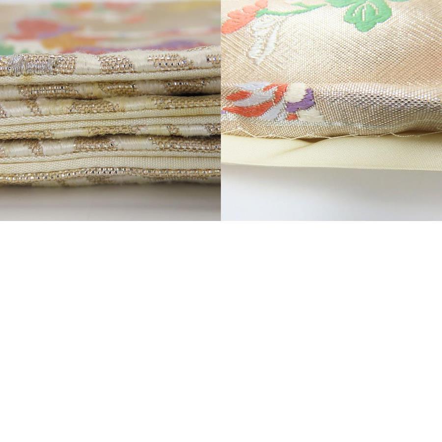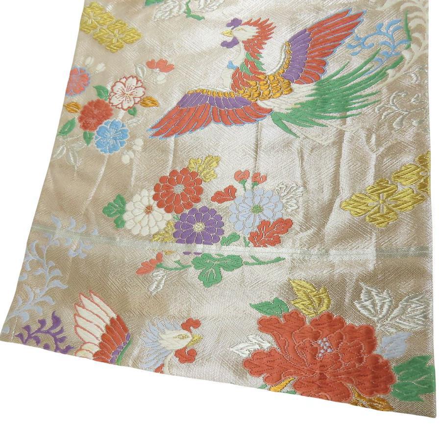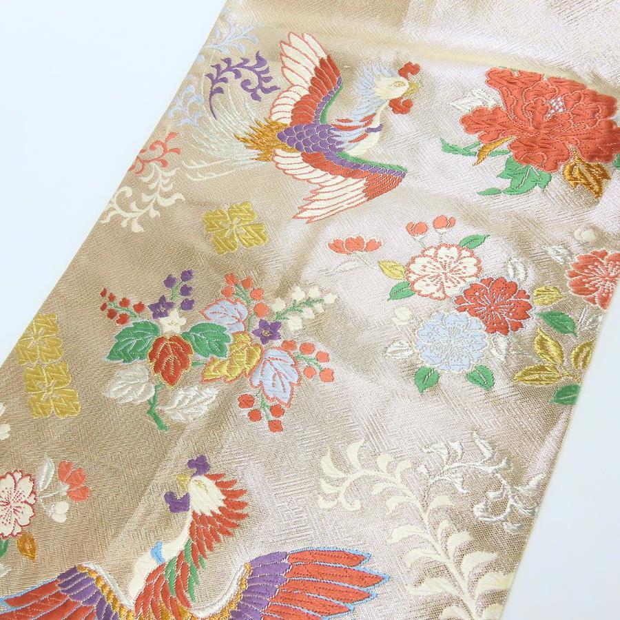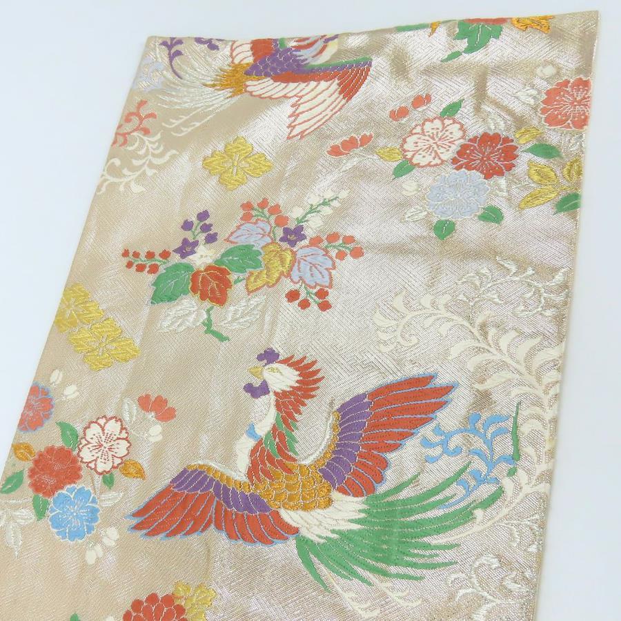 品名【中古】 袋帯 正絹(金銀糸除く) シャンパンゴールド マルチカラー 鳳凰に草花 佐賀錦 レディース 女性