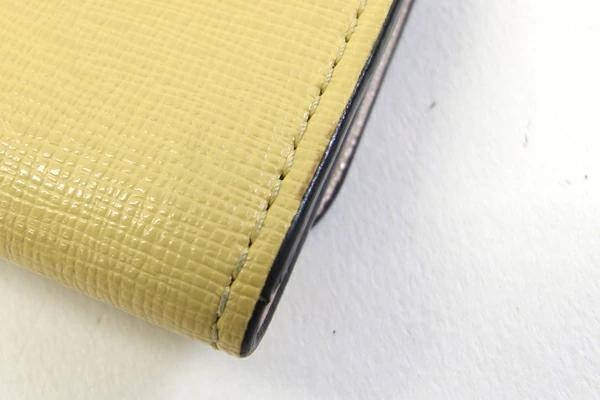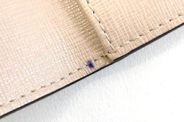 内側:フチ折り目部分にヒビあり。薄汚れ、下部にペン汚れあり。左面にボタン跡、薄っすら金具跡あり。