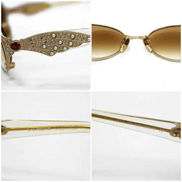 | 状態 | テンプルの装飾がお洒落なサングラスです。強い度が入っておりますので、使用時にはレンズの交換が必要になります 【状態】 左側レンズ上と右側テンプル下ストーン取れ、フレーム小傷 【特記事項】 遠目にははほとんど目立ちません。まだまだお使い頂けます。 |