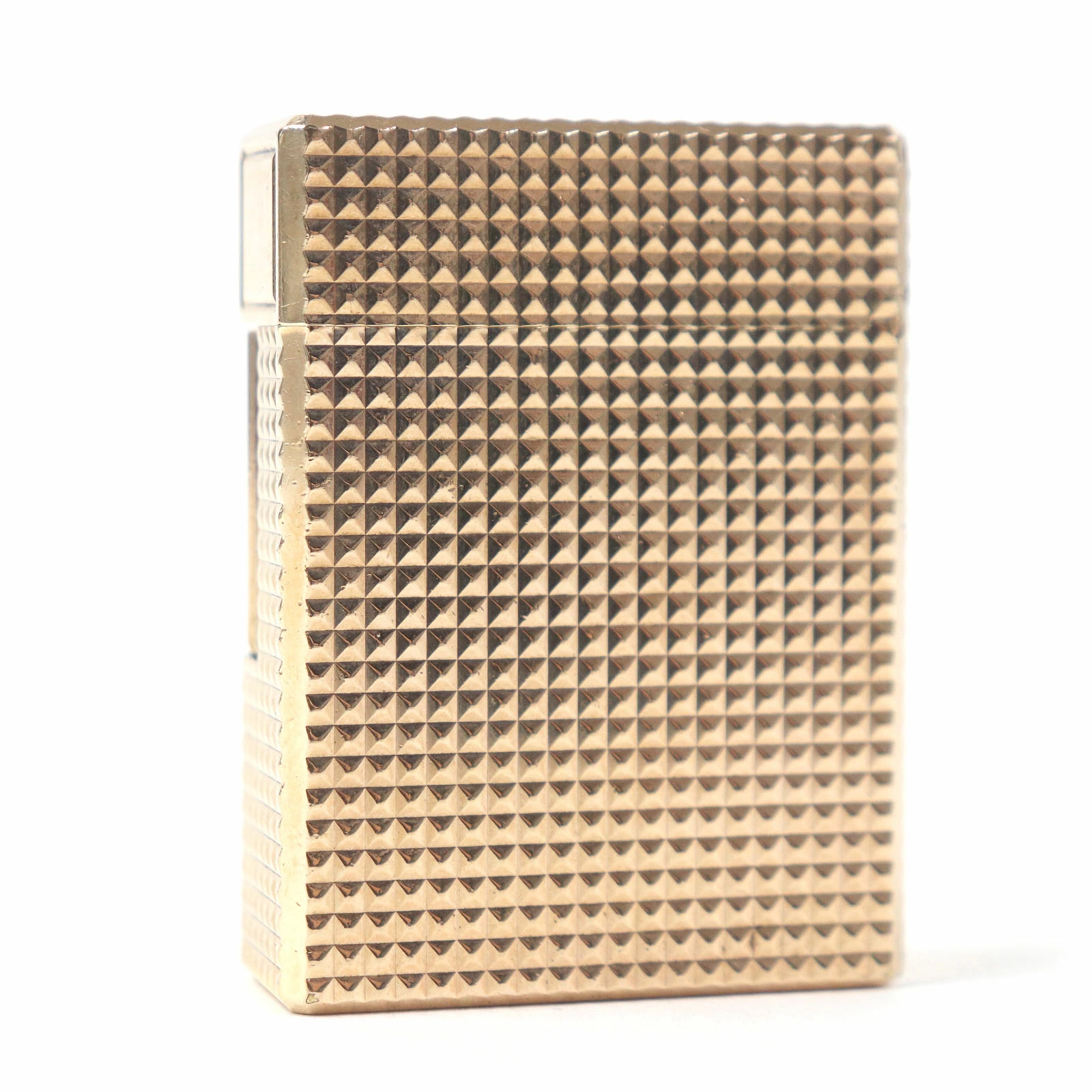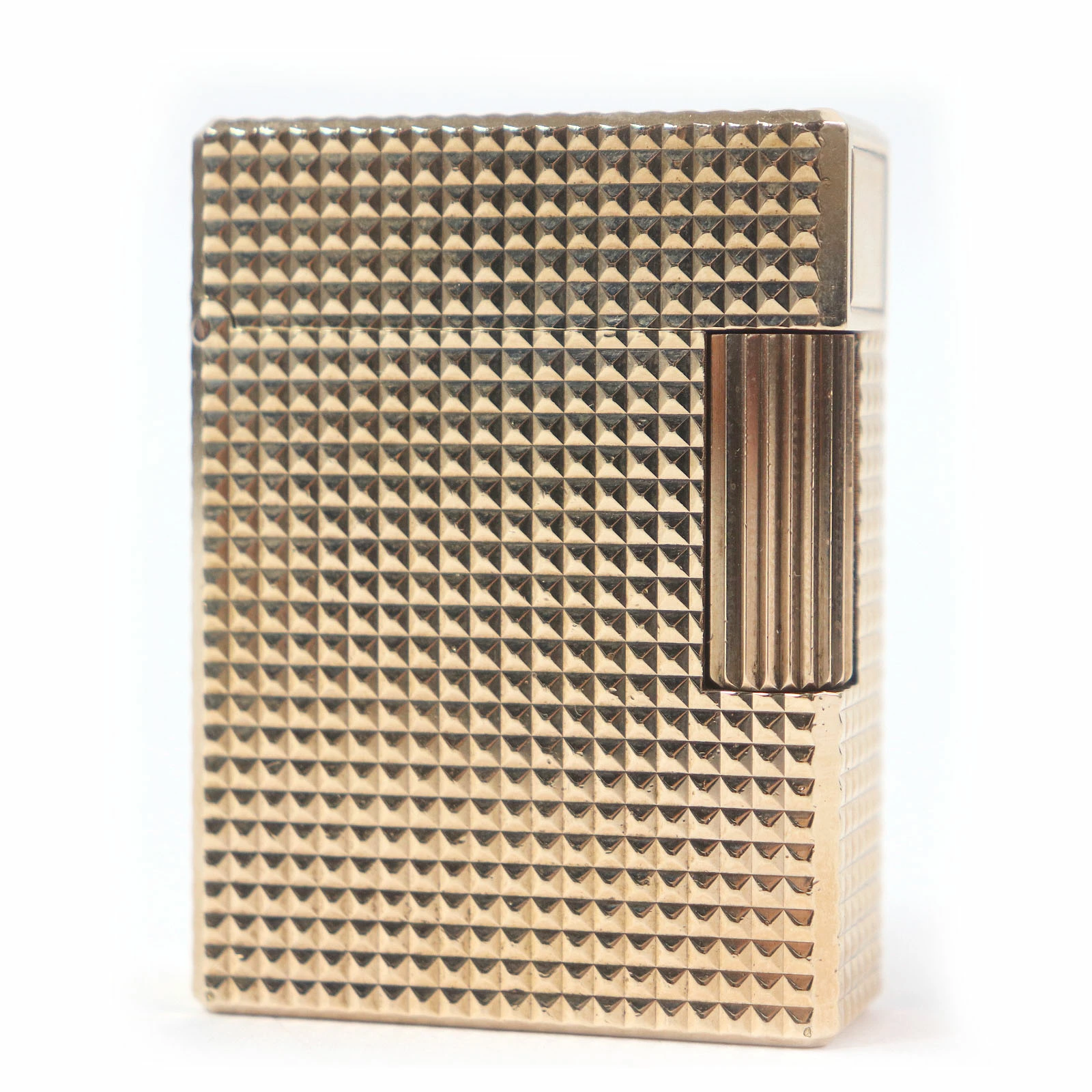 Pre-owned, good condition Dupont Line 1 Short Diamond Head Square Roller Gas Lighter, Gold, Made in France, Men's, ignition confirmed.
