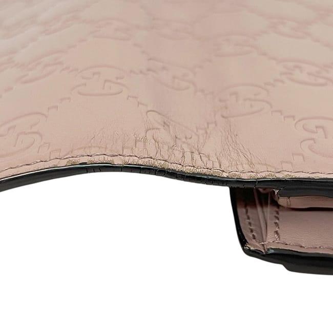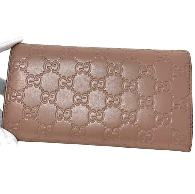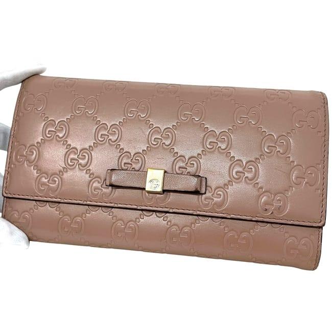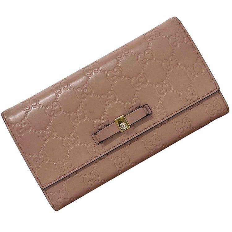 ☆---- 商品について ----☆グッチ 二つ折り 長財布 ec-24305 ピンク ベージュ シマ 388679 財布 レザー 中古 0959 GUCCI リボン ホック GG レディース 女性 定番 人気 シンプル 革財布 ロング ウォレット ヴィンテージ ホック財布 ロゴ型押し 箱付き ブランド 本物 鑑定済み