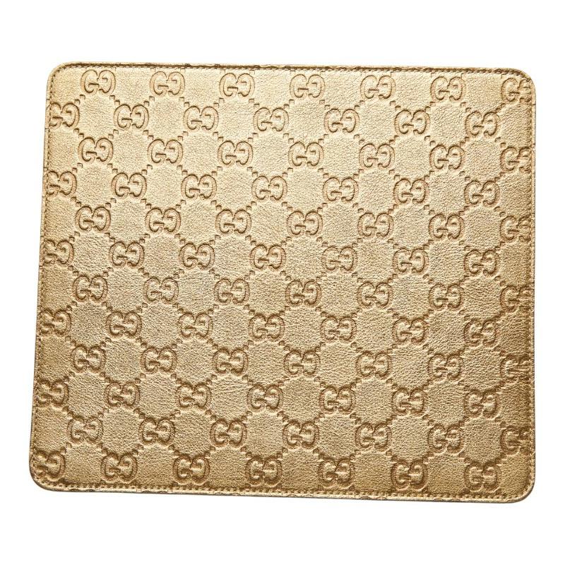 Pre-owned Gucci Guccissima GG logo mouse pad, gold leather, perfect for PCs and other home decor.