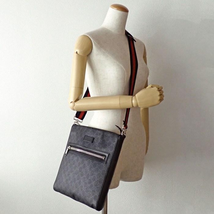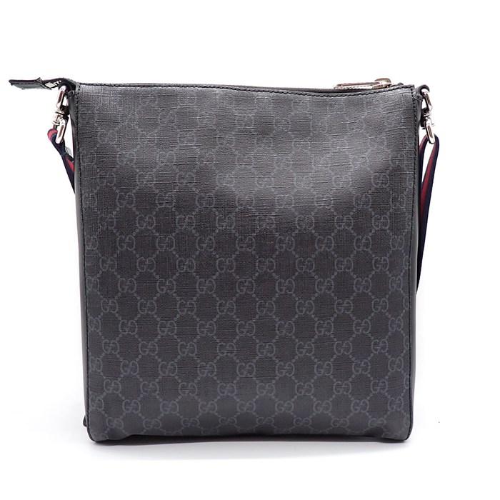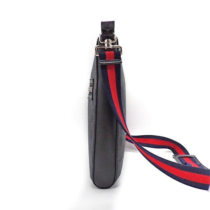 ■商品名GUCCI ショルダーバッグ ミディアム メッセンジャーバッグ 474137 ブラック GGスプリームキャンバス ブルー/レッド/ブルーウェブ ストラップ ブラック カーフレザー シルバー金具 【中古】